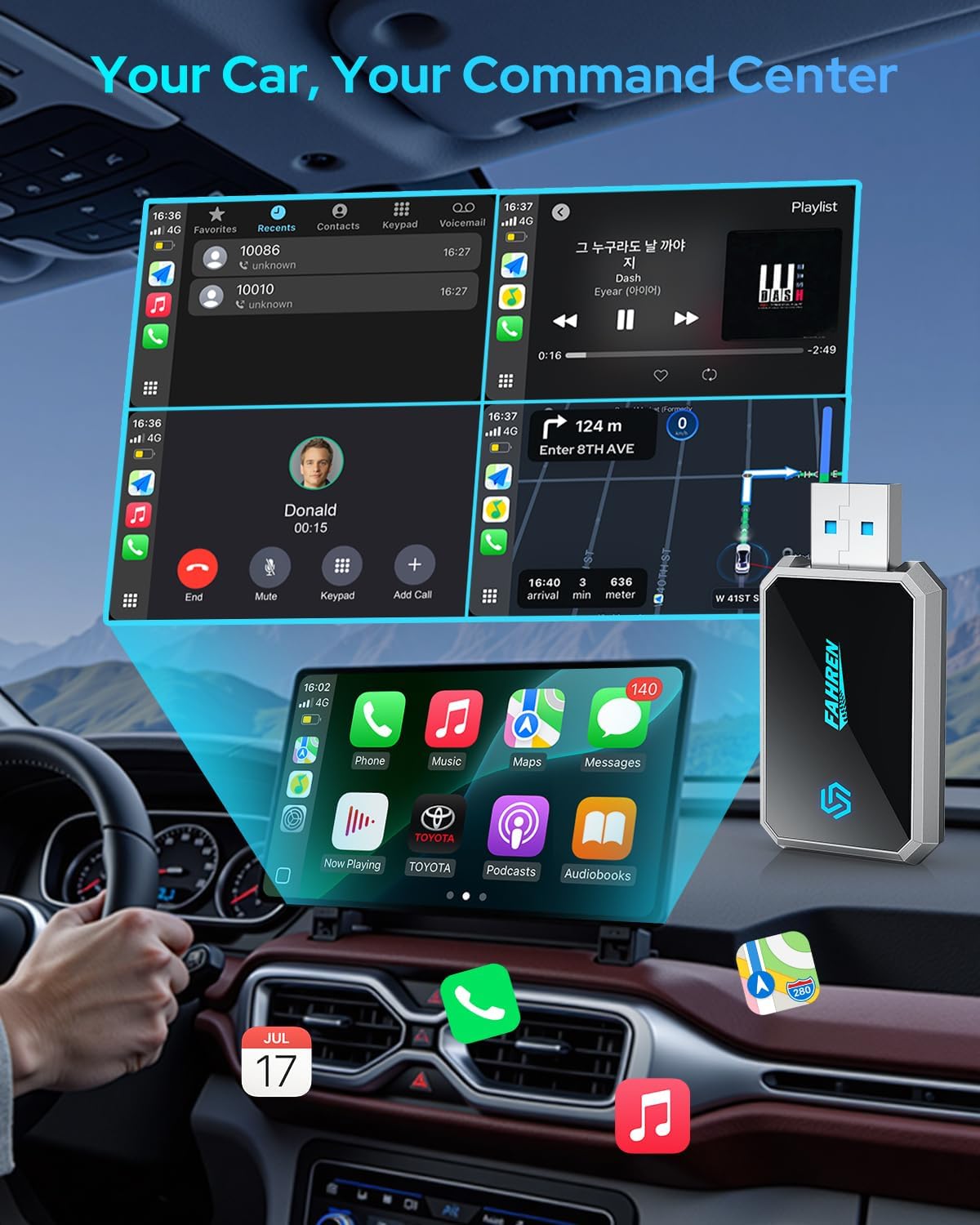 [Universal Compatibility]:This wireless CarPlay adapter is compatible with iOS 10+ and later models, and works with 800+ car models (2017 or newer) that support wired CarPlay. For any compatibility concerns, please refer to the compatibility guide image at the bottom.Note: This CarPlay adapter is only for iOS systems. If you have any product-related questions, feel free to contact us via Amazon—we’ll respond promptly to assist you.