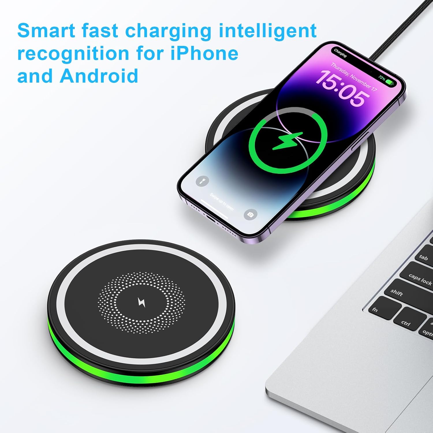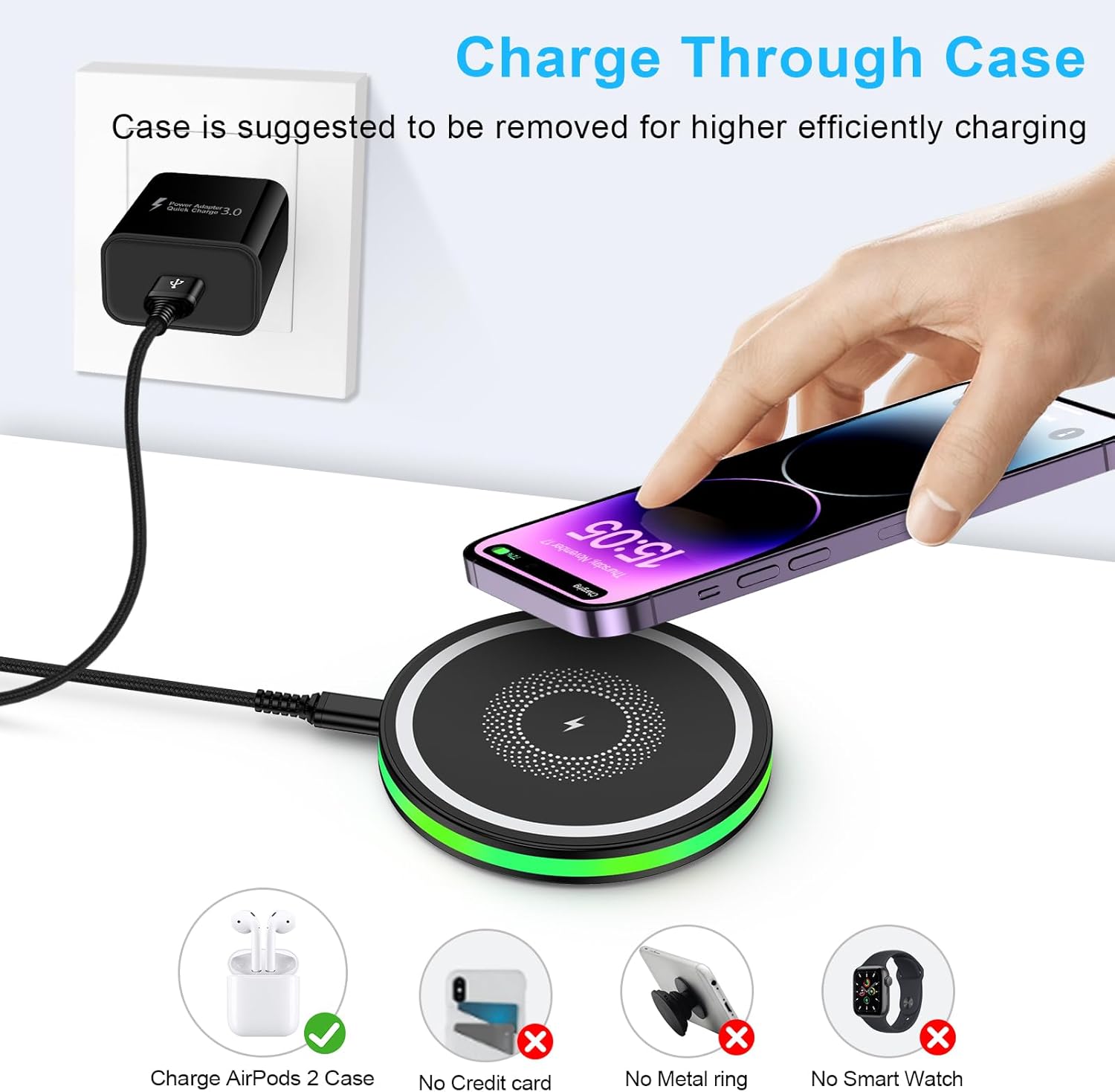 Extensive Compatibility: 15W samsung wireless charger fast charging for Samsung Galaxy S25 Ultra/S25/S25+/S24 Ultra/S24/S24+/S23 FE/S23/S23+/S23 Ultra/S22/S22+/S22 Ultra/S21/S20/S10/S10+/S10E/S9/S9+/S8/S8+/S7/S7 Edge, Note 20/20 Ultra/10/10+/9/8/5,Google Pixel 9 Pro XL/9 Pro/9/8 Pro/8/7 Pro/7/6 Pro/6/5/4XL/4/3XL/3/2XL/2/XL; 7.5W Wireless iPhone charger fast charging for iPhone 16 Por Max/16 Plus/16/15/15 Plus/15 Pro/15 Pro Max/14/14 Plus/14 Pro/14 Pro Max/13/13 mini/13 Pro/13 Pro Max/12/12 Pro/12 Pro Max/12 Mini/11/11 Pro/11 Pro Max/XS/XR/X/XS Max/iPhone 8/8+; 5W standard phone charging pad for Airpods 2,Galaxy Buds and more devices.