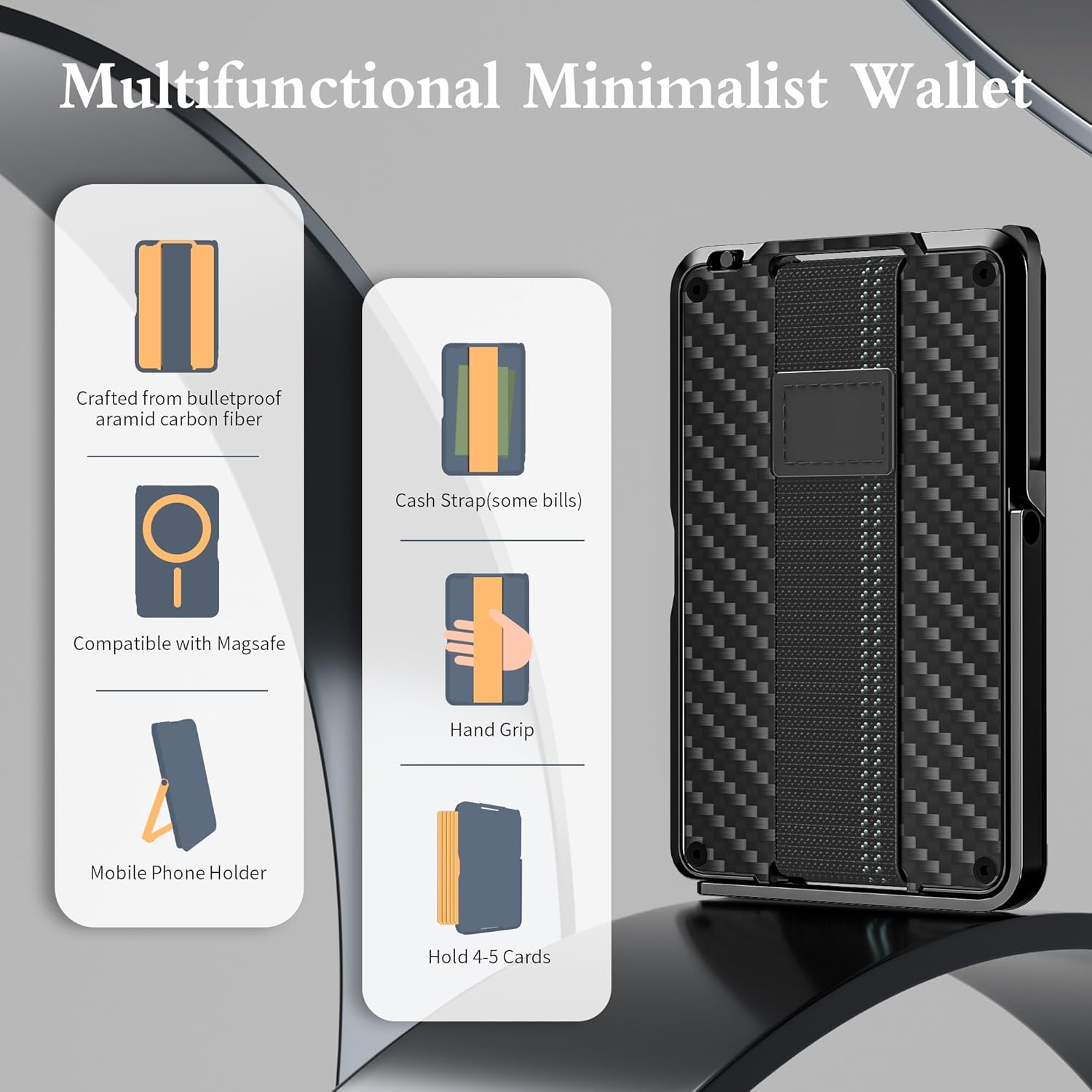 for Magsafe Wallet, Magnetic Phone Wallets, Front Pocket Wallets for Men, Slim Minimalist Wallet with Money Strap/Grip, Pop Up Case|Phone Stand|Rfid Blocking|Card Holder(Carbon Fiber)