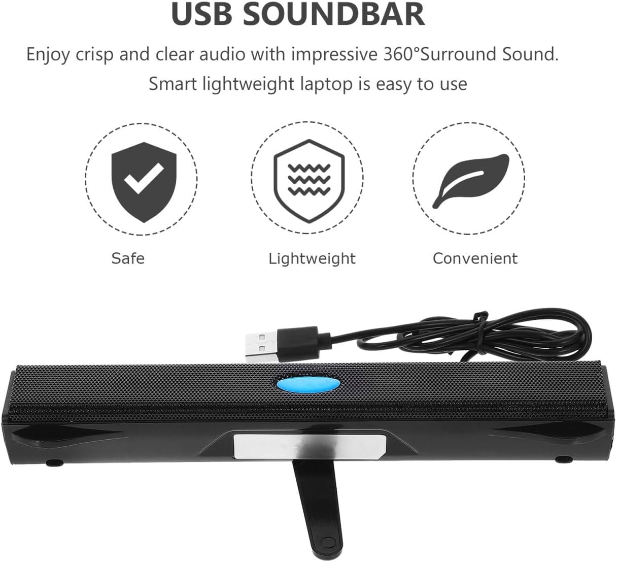 USB soundbar: clear sound quality: the sound bar adopts well- chips and high-fidelity speakers, with clear sound quality and high volume, which can meet the listening needs of users