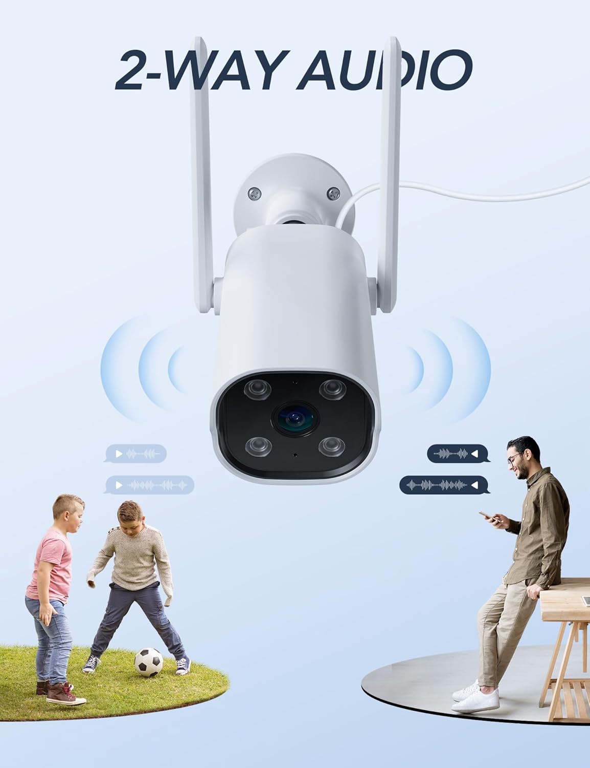 IP65 Weatherproofing & Two-Way Audio: With IP65 waterproof protection, this durable outdoor security camera withstands rain, wind, and extreme temperatures (-4°F to 120°F). Communicate in real-time with neighbors, visitors, delivery drivers, or unwanted guests using the built-in microphone and speaker
