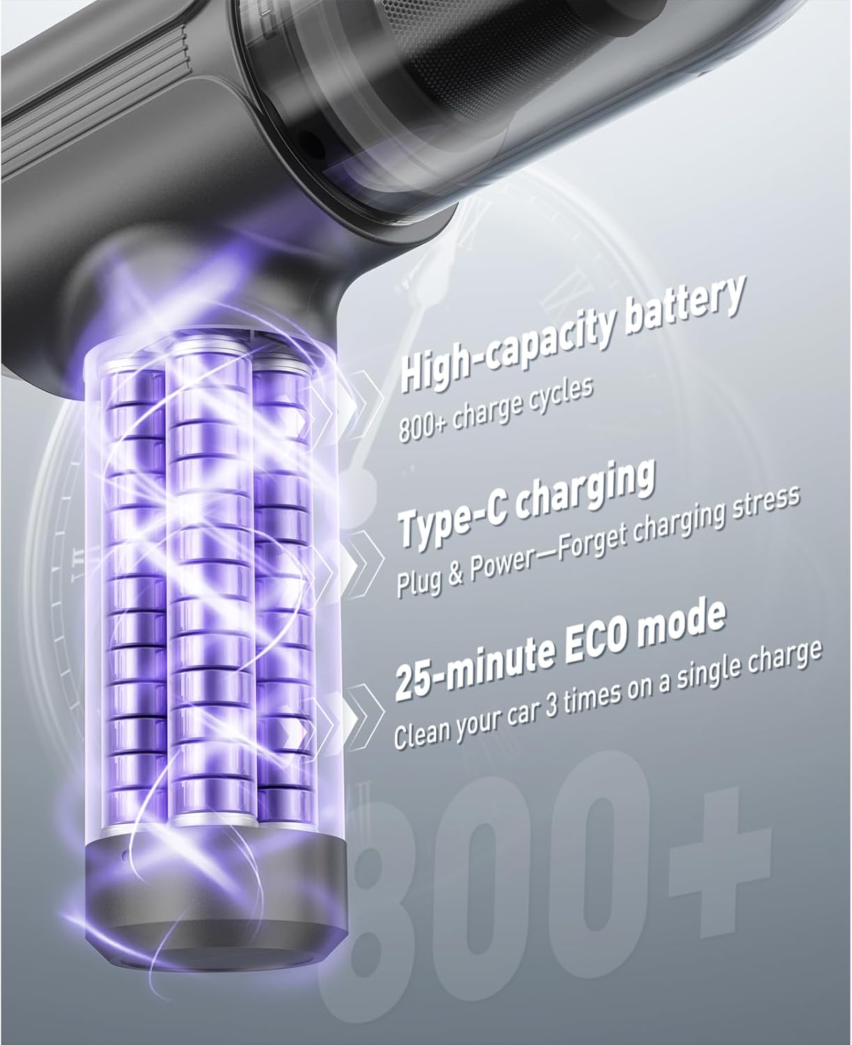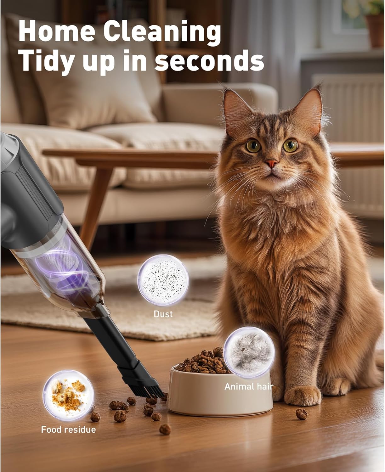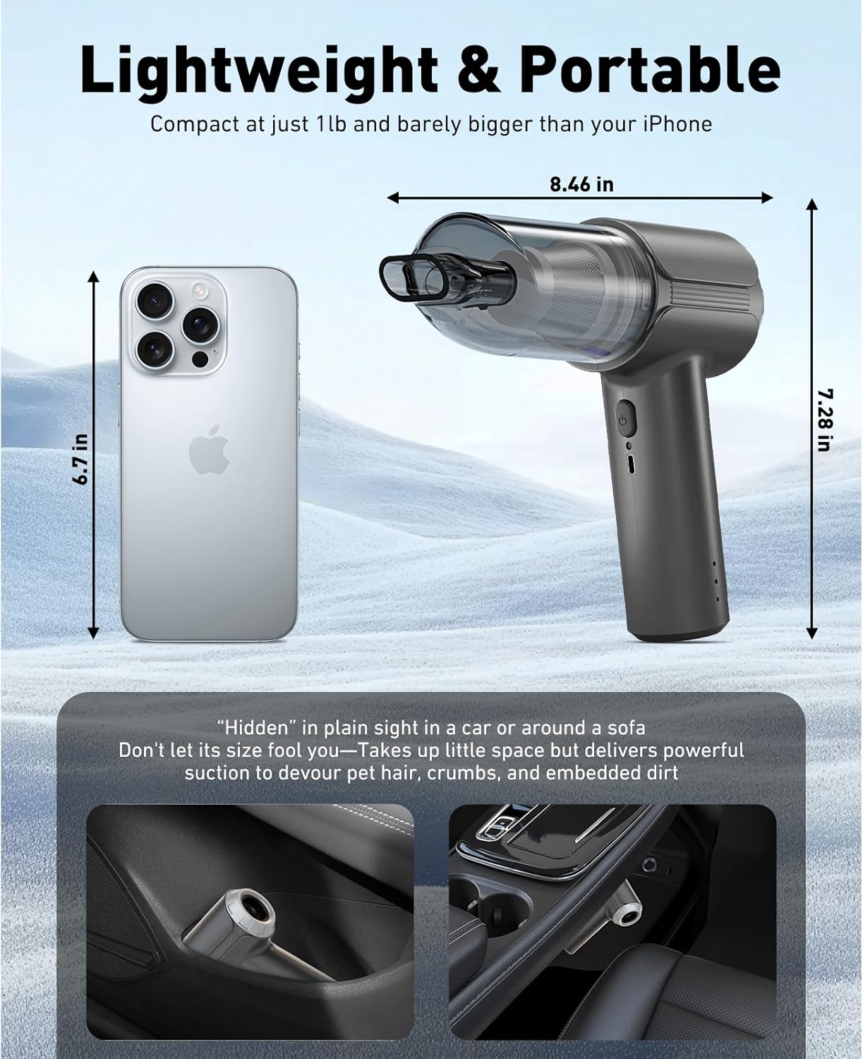 【 Ultra-Portable Freedom】Weighing less than a coffee mug (0.8 lbs), this cordless wonder delivers. The cordless design allows for more flexible cleaning at home or in the car. Its portability also makes it ideal for travel or outdoor activities. After use, this handheld vacuum can be conveniently stored in any corner of the car or home without taking up too much space.