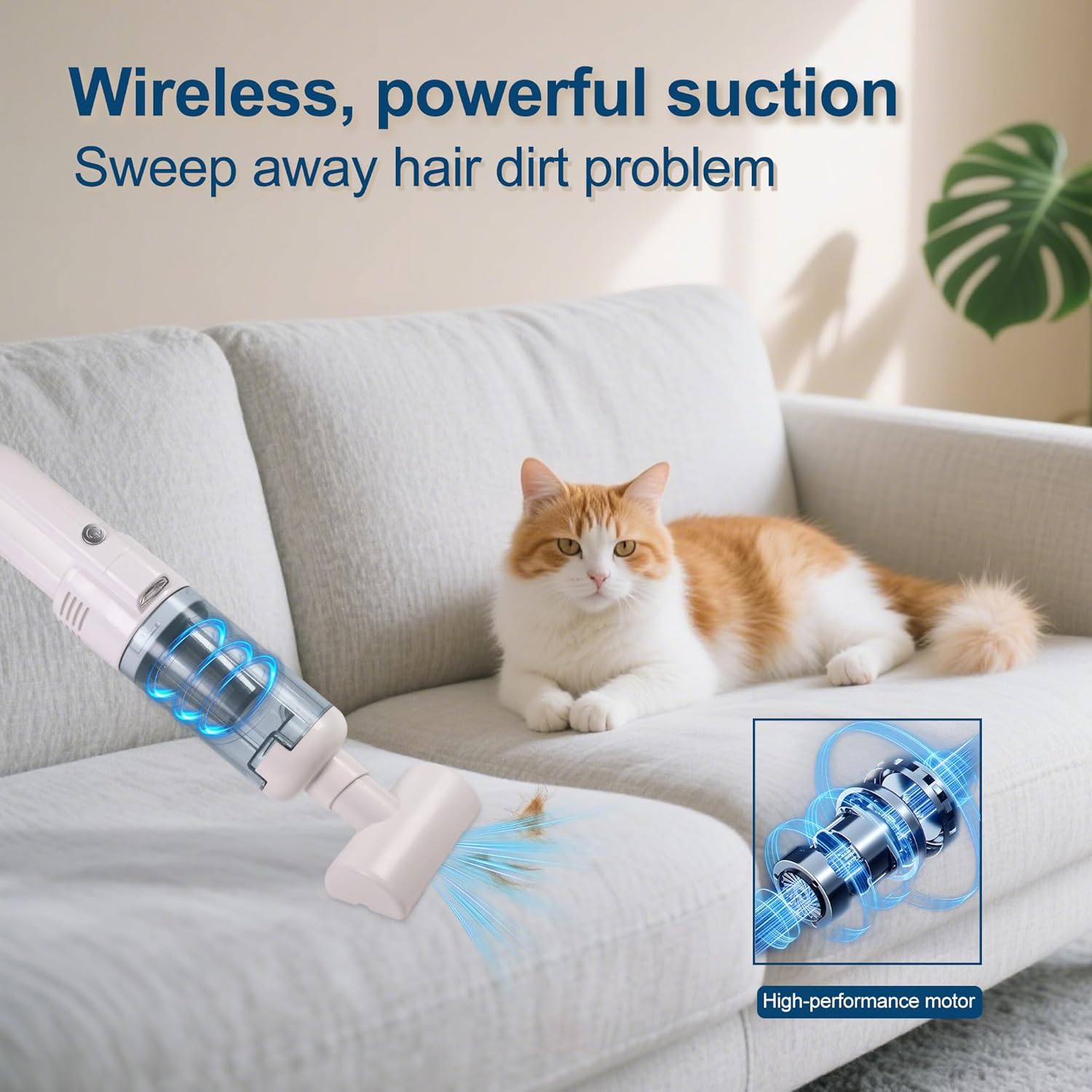 【Cordless & Lightweight Design】 Enjoy unrestricted cleaning freedom – maneuver easily around furniture, stairs, and even into your car without cord limitations.