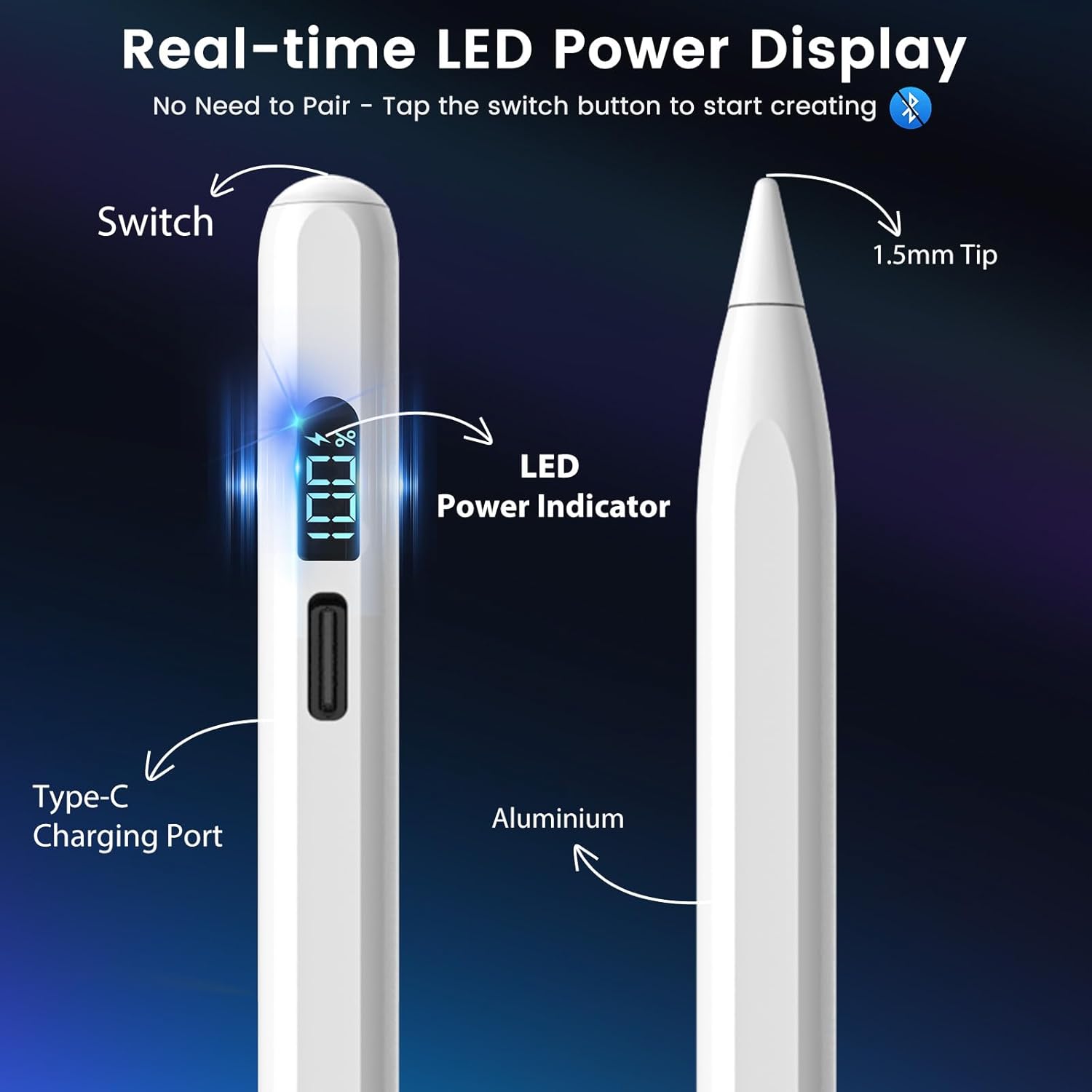 Real-Time LED Battery Indicator: Features a digital LED display showing exact battery percentage (1-100%). Know your usage: 100% = 11 hours continuous writing, 60% = 6 hours productivity, 30% = 3 hours runtime. Eliminates guessing and charging anxiety