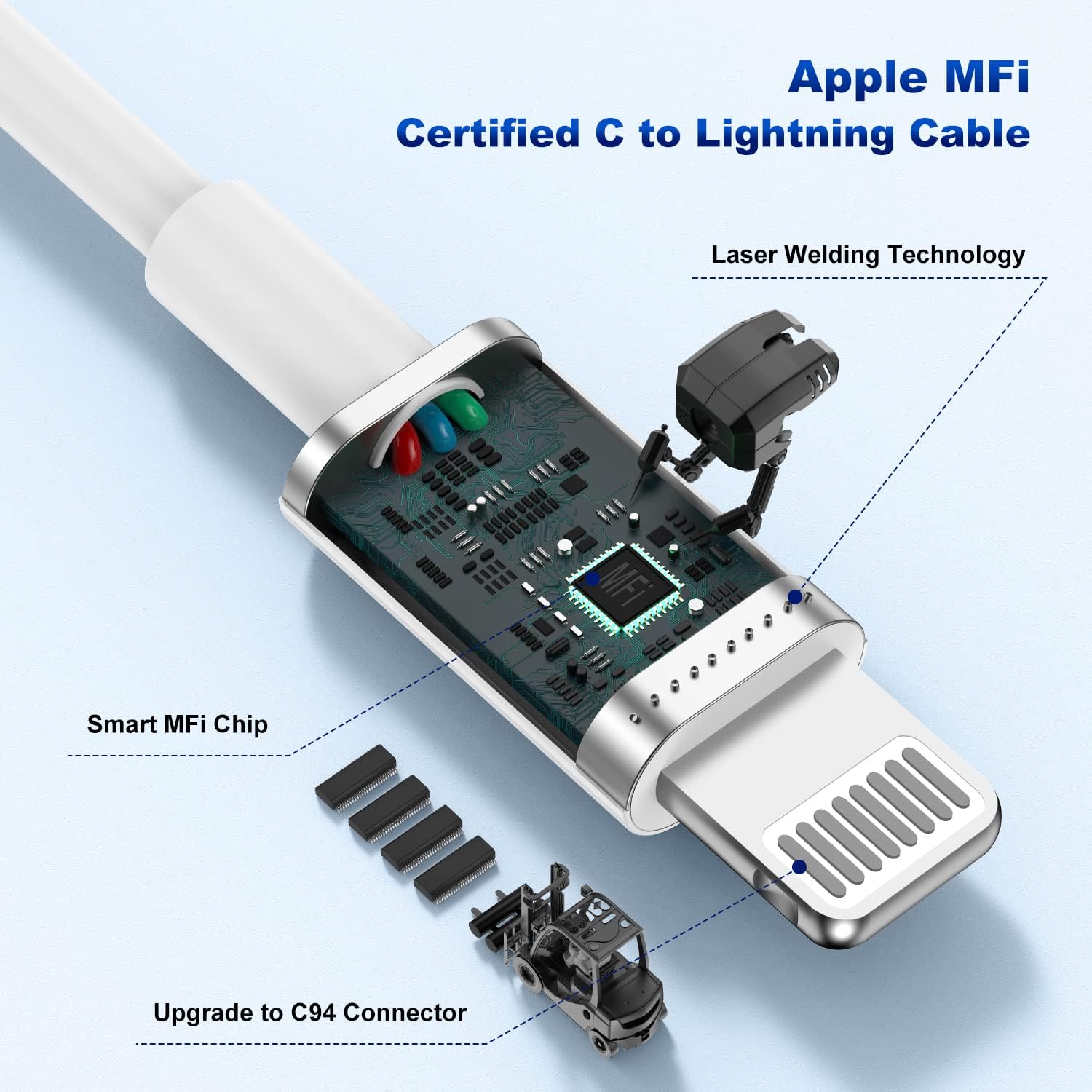 【6FT MFi Certified USB C to Lightning Cable]】: 2Pack 6ft Type C to Lightning Cable with the Original MFi Chip, Built with latest C94 terminal and smart chip. Pre-eminent copper core wire maximizes signal quality and ensures stable data sync, rapid charging at 3A maximum, helps you work efficiently. Tangle-free prefect length is convenient for usage while charging at home/office/travel in bed, hotel rooms, and more.