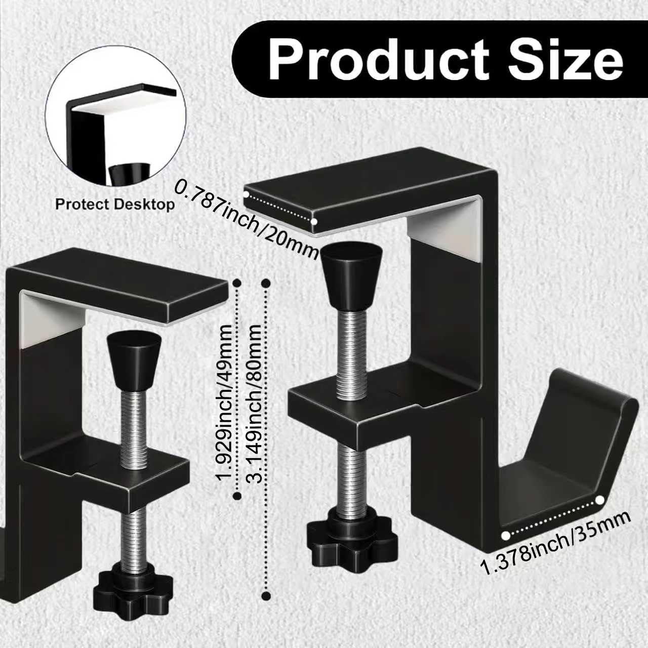 Adjustable Headphone Hanger: The headphone hanger can be easily tightened based on the thickness of desk, and allow it firmly fixed on most table.Make your desk space clutter free.