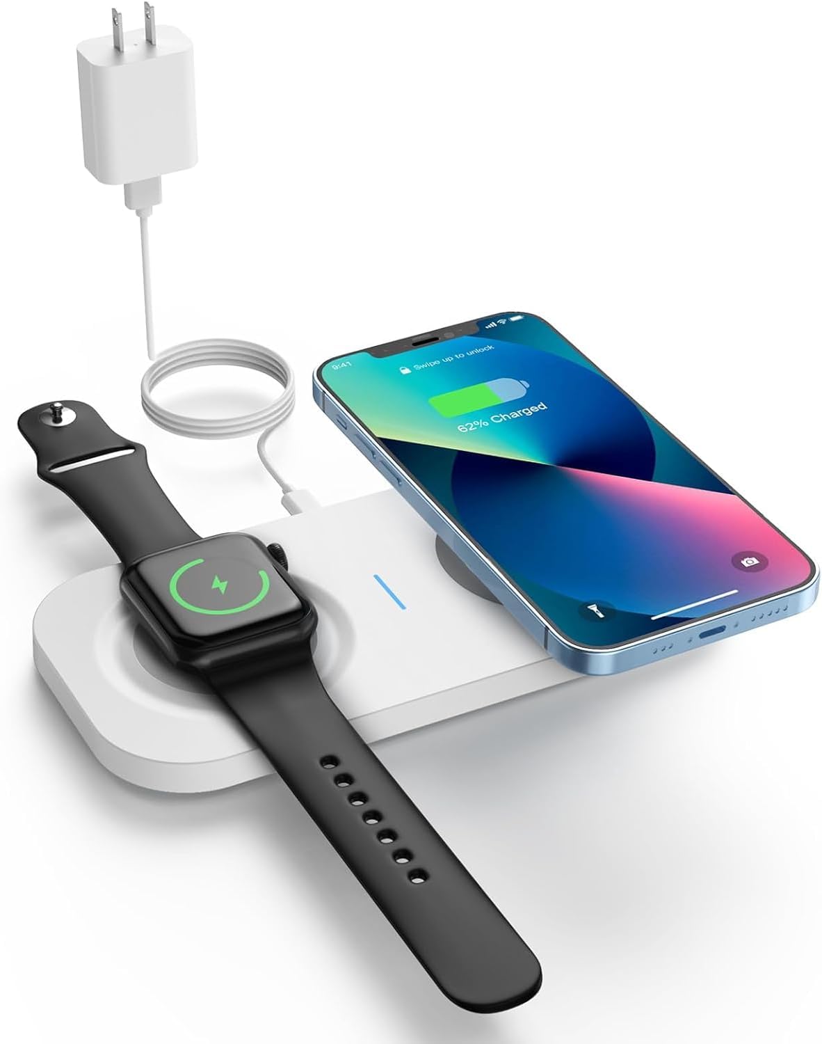 📱【Specially Made for Apple Fans】: Still looking for an ideal charging pad for Apple devices? JoyGeek dual wireless charging pad is exactly what you need! Our iPhone charging pad works flawlessly with all Apple devices with wireless functions, including iPhone Series 8-15, Apple Watch 9/8/7/6/SE 2/SE/5/4/3/2, and AirPods 3/Pro 2/Pro/2 (Model: A1938).
