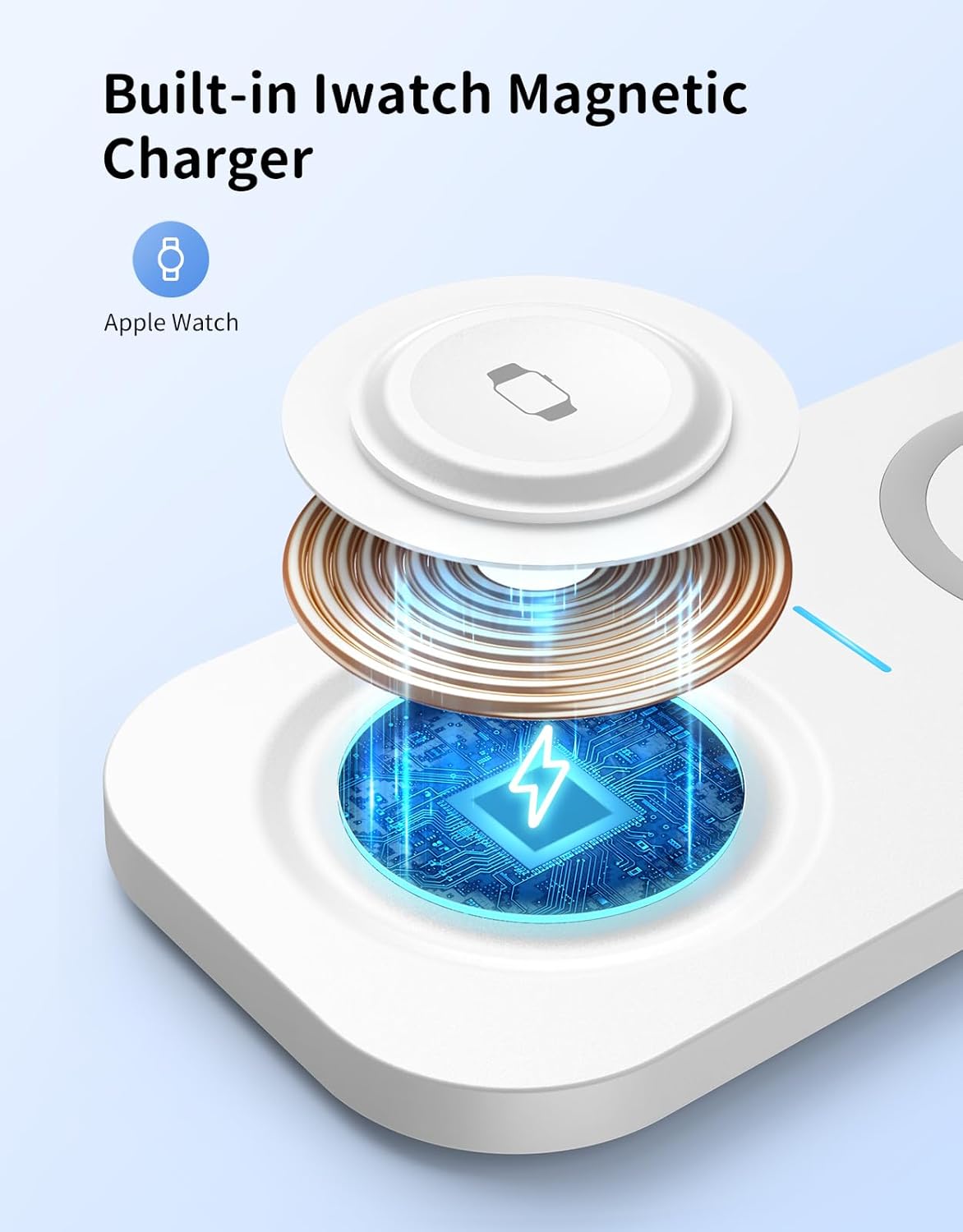 ⚡【Precise Alignment & Stable Charging for iWatches】: Discover uninterrupted charging with our charging pad for Apple! No extra installation required. We design built-in strong magnets in the watch charging area of this dual wireless charging pad. Just hold your Apple Watch near the magnetic charging mat and see it snap into place instantly.