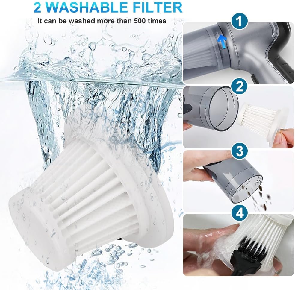 【Powerful Motor for Deep Clean】Handheld vacuum cleaner has a suction power of up to 15000PA,which is enough to meet your cleaning needs for dust, pet hair and some difficult-to-clean debris in the car or home.No mess can escape its grasp!