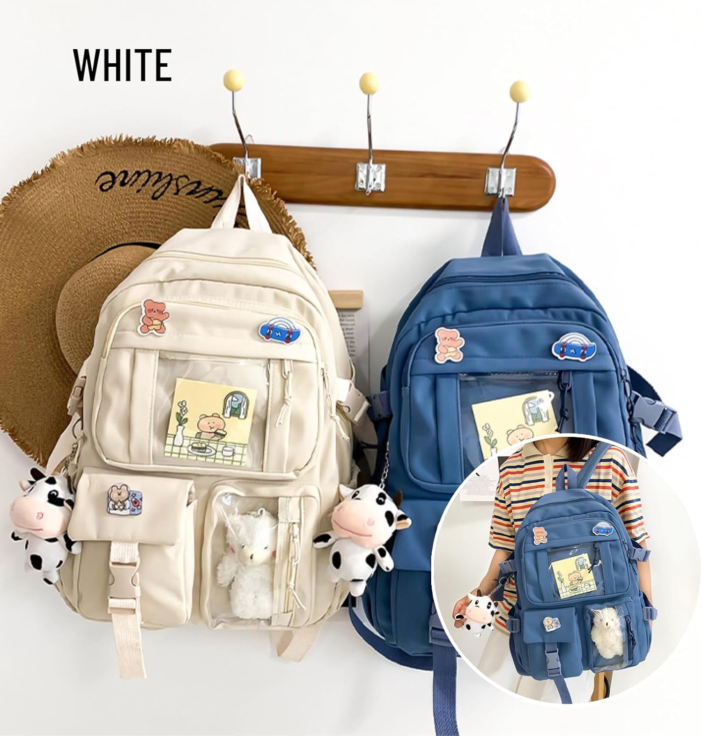 ◆Kawaii Backpack Size:31*13*43cm/12.2inch(L)*5.1inch(W)*16.9inch(H). Weight:1lb. Come with cute pins and hanging ornaments.