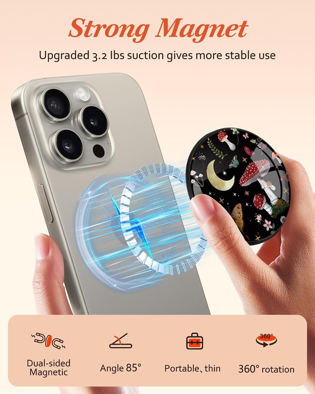 Wide Compatibility: This magnetic phone grip holder is compatible with iPhone 12/13/14/15/16/17 pro max, pro, plus, air phone series, it is also with other cell phones with magnet plate or magnetic cases. Note: It cannot be used for cases without magnetic ring and phones without magnetic