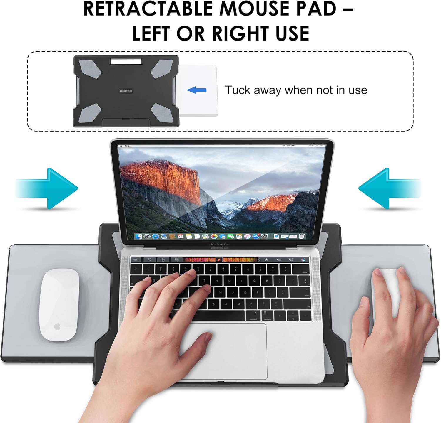 Retractable Left/Right Laptop Mouse Pad – Stable Mouse Pad for Laptop Use: Work comfortably anywhere with this laptop lap desk featuring a retractable left/right laptop mouse pad. Whether you’re left-handed or right-handed, the travel mouse pad keeps your mouse secure and steady—no more slipping or falling, even on soft surfaces like beds or couches.