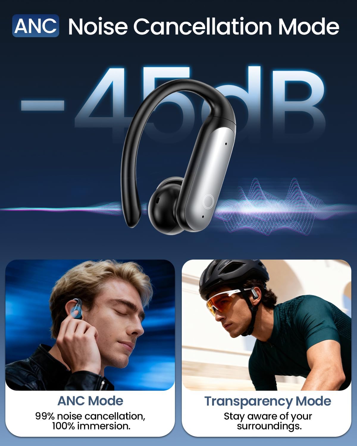 PREMIUM HI-FI SOUND & SMART NOISE CONTROL — Immerse yourself in exceptional audio powered by a large 13mm dynamic driver delivering deep bass and crisp highs. Choose from 5 preset EQ modes — Normal, Rock, Classic, Pop, or Jazz — to match your listening style. Seamlessly switch between Active Noise Cancellation (ANC) for full focus and Transparency Mode for situational awareness, via the touchscreen case or simple triple-tap controls.