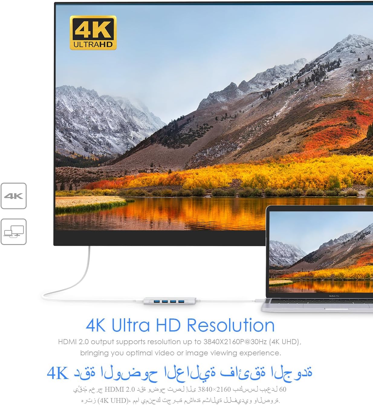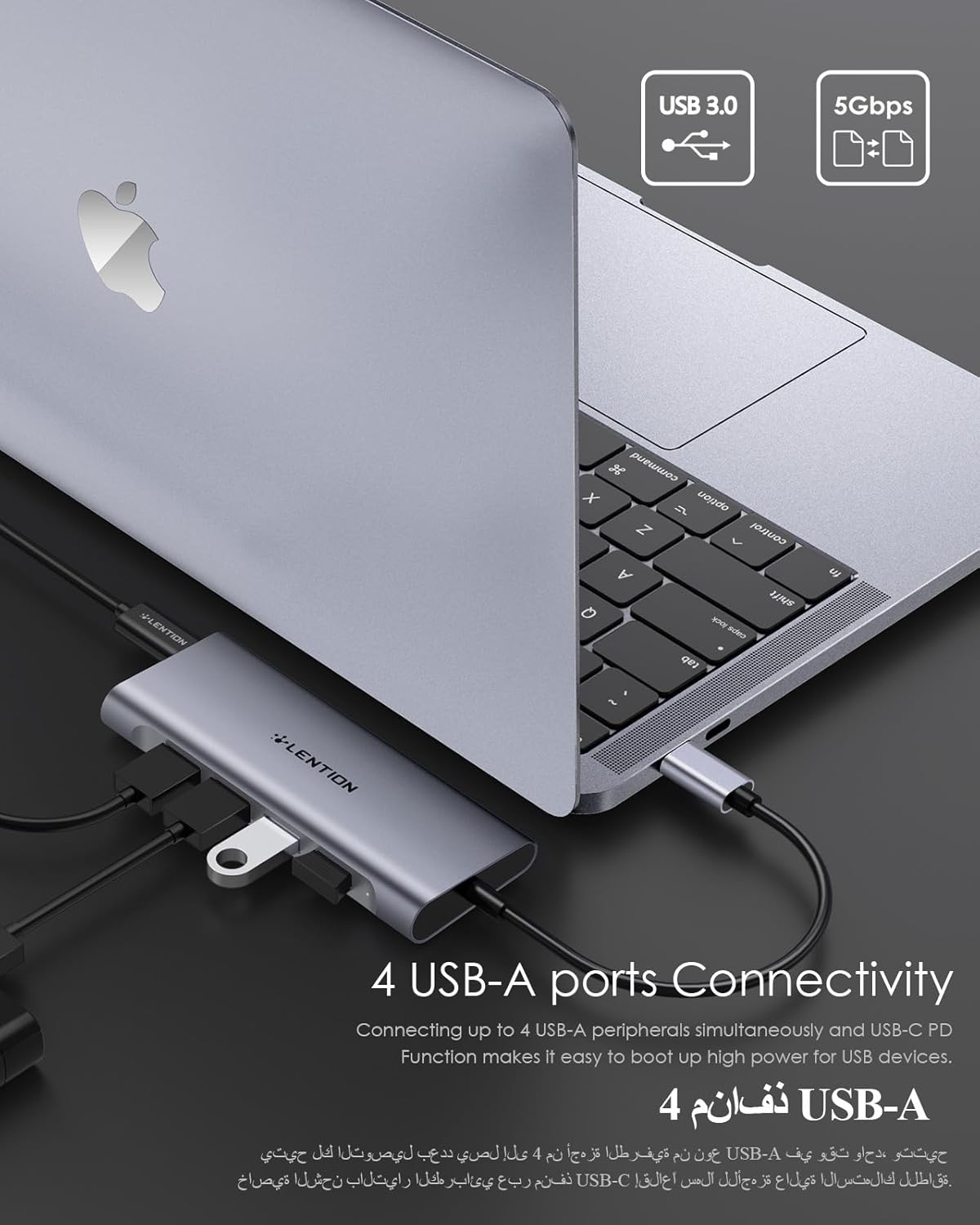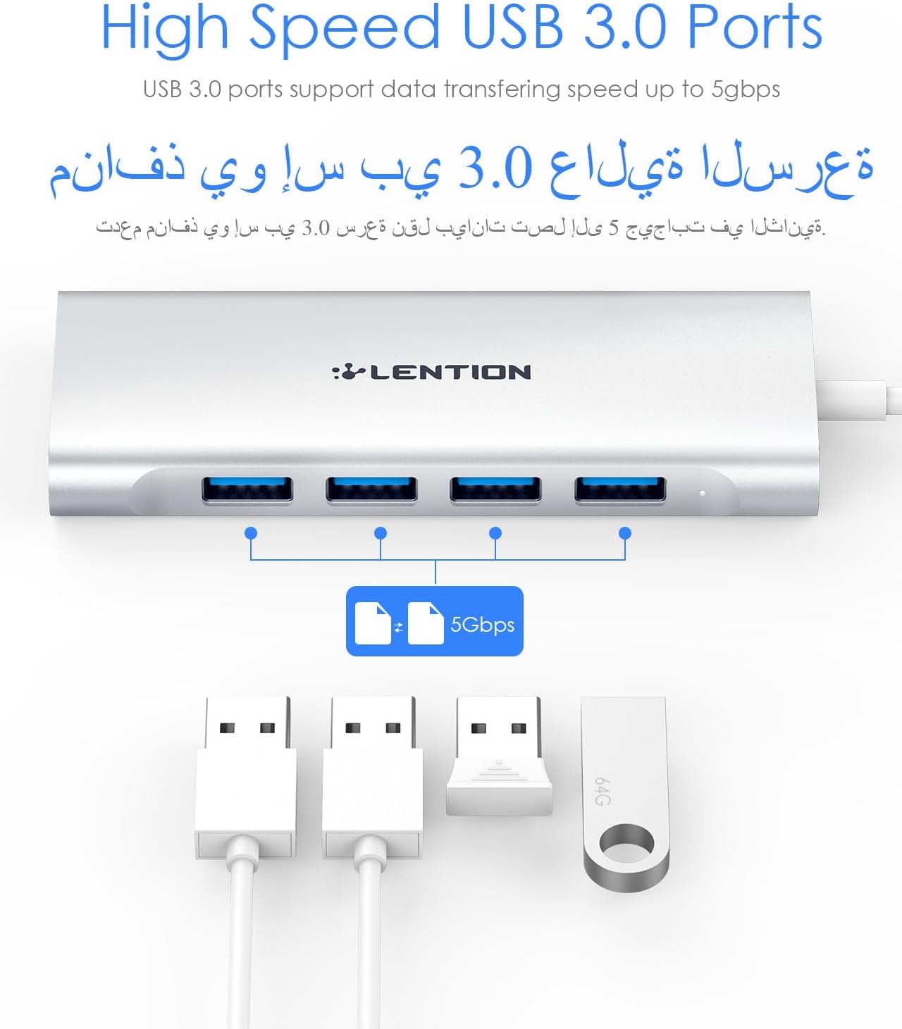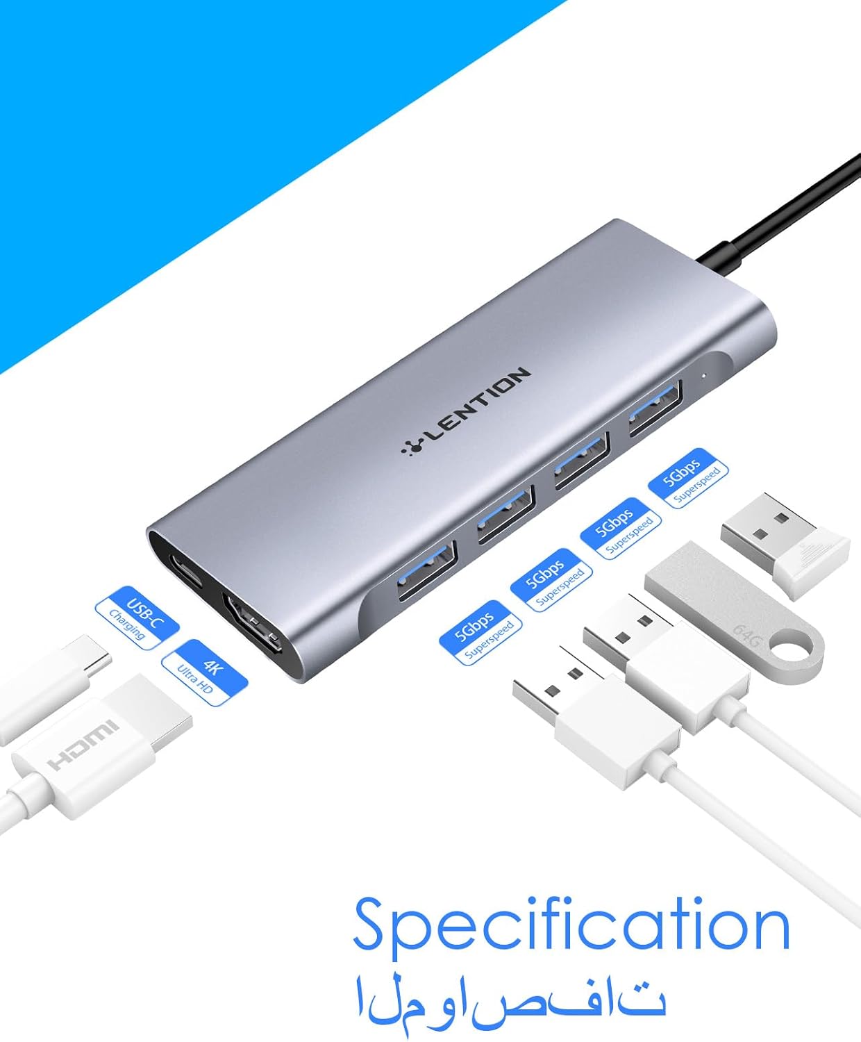 Quadra USB 3.0 Ports: The LENTION C35 USB C hub multiport adapter can access to four USB accessories at the same time, feel free to connect wire keyboard, mouse, USB flash drive, hard disk, etc, with data transfer speed up to 5Gbps. (Not for Apple SuperDrive)