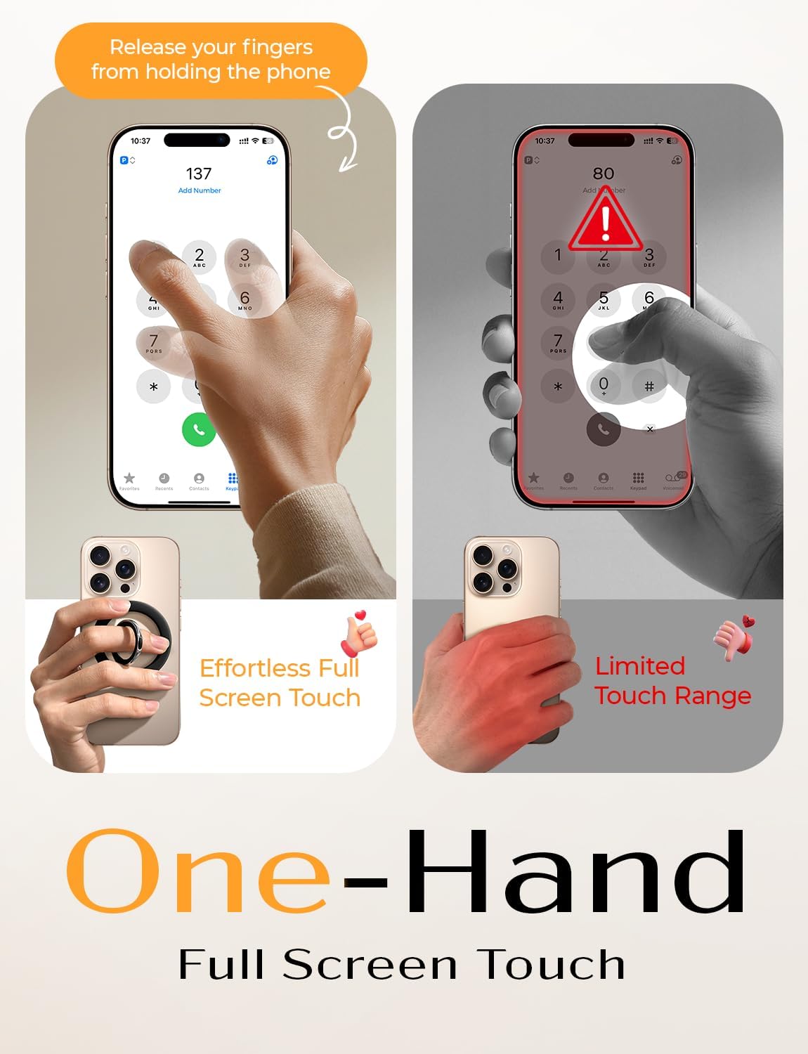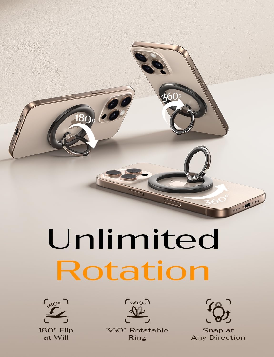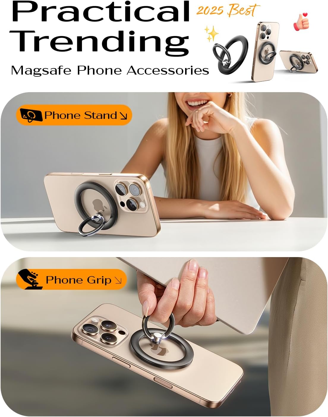 COMPATIBILITY: LISEN MagSafe phone ring holder is designed for iPhone 17/16/15/14/13/12 series and all other MagSafe compatible devices; Non-magsafe devices users are able to enjoy this smooth phone holder grip, with the gifted magnet ring