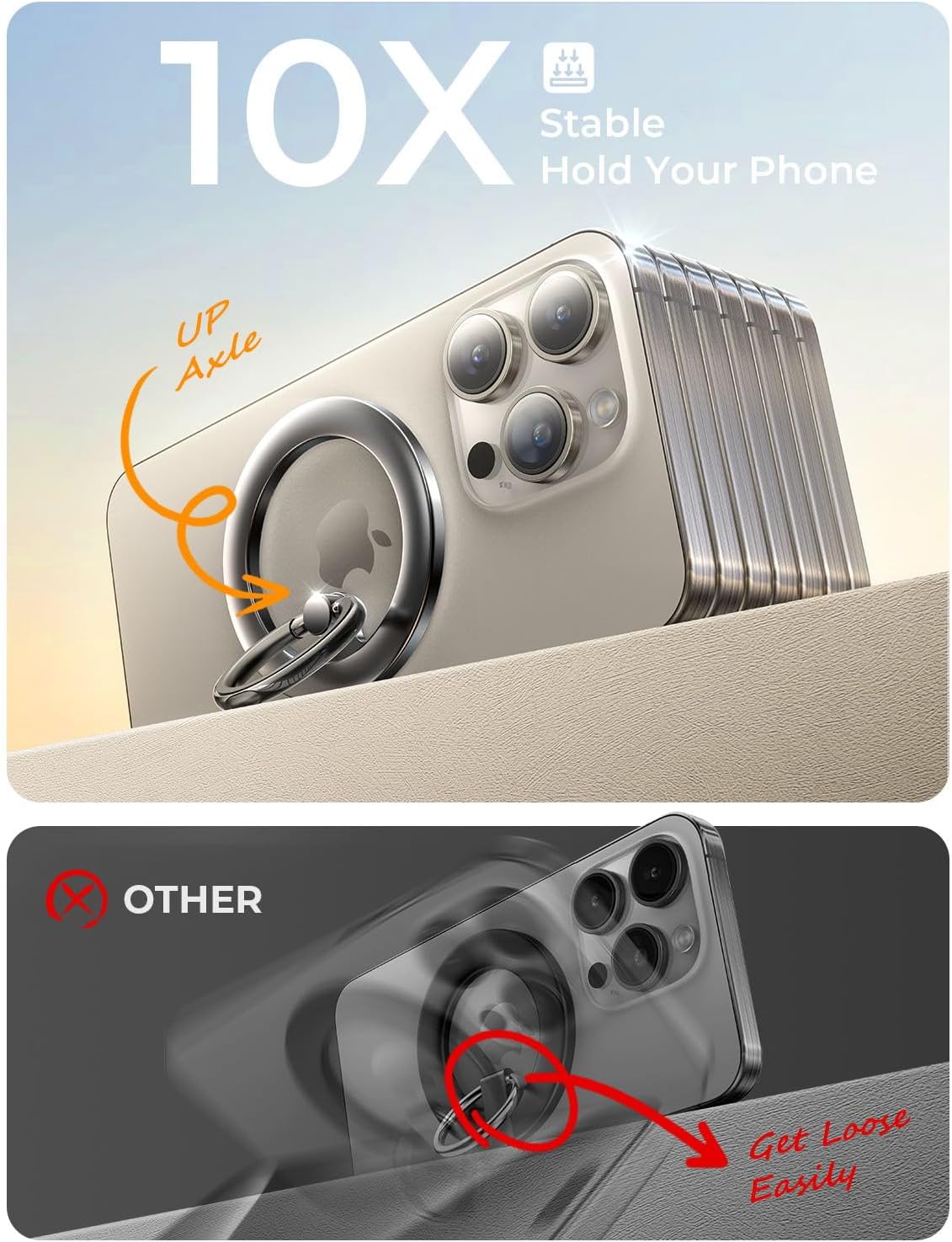 360° ROTATION & 10X DURABILITY: experience ultimate ring holder flexible ring with LISEN MagSafe phone ring holder, offering 180° ring flip and 360° rotation at will, ensuring phone gripping at any angle and staying perfect view from every perspective. LISEN labotary tested durability, withstands 10,000+ folds without any loosening or loss of functionality
