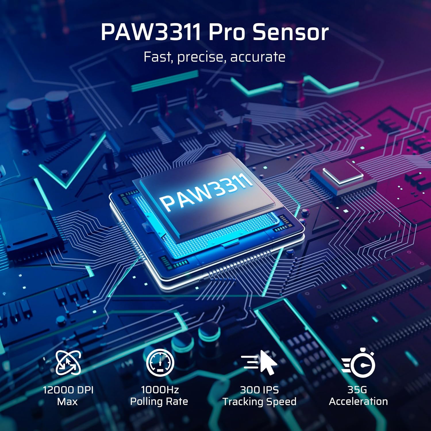 High-Precision PAW3311 Sensor — Unlock unparalleled precision and accuracy with the PAW3311 Sensor, boasting up to 12000 DPI, 1000Hz polling rate, 300 IPS tracking speed, and 35G acceleration. 6-step DPI levels are re-definable via software catering to both casual and competitive gamers.