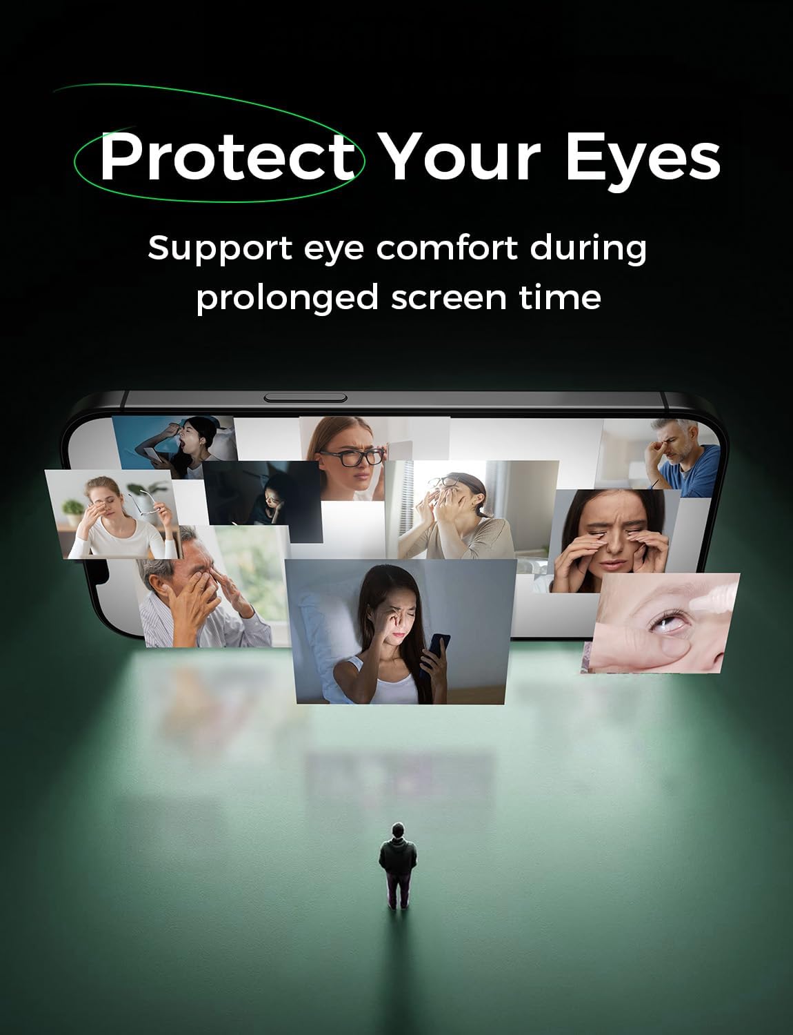 Advanced Circular Polarization Tech: Unlike other screen that emit harmful blue light, MAGIC JOHN eye protection screen protector features an exclusive circular polarization base layer, mimicking natural light just like the original iPhone screen. It neutralizes harsh glare and single-point eye strain caused by linear polarization