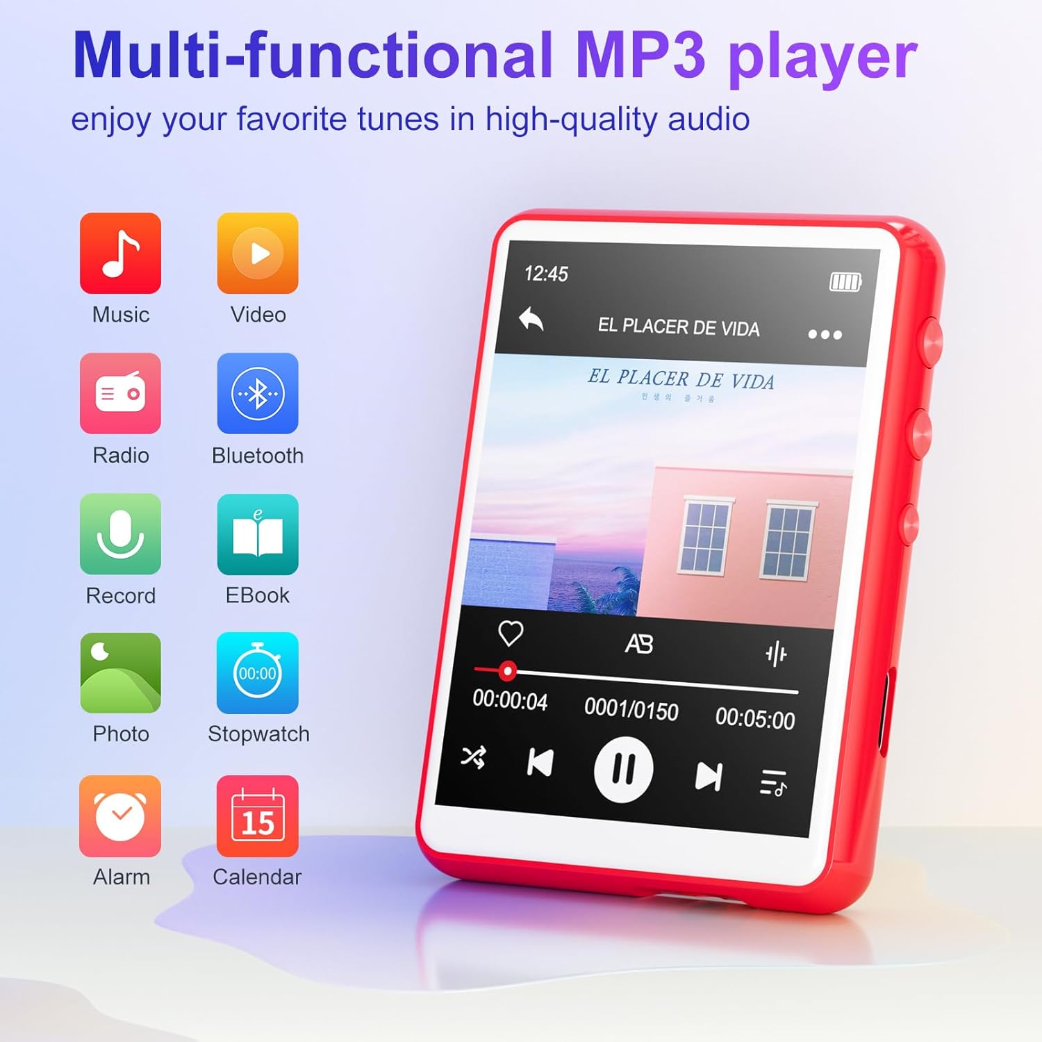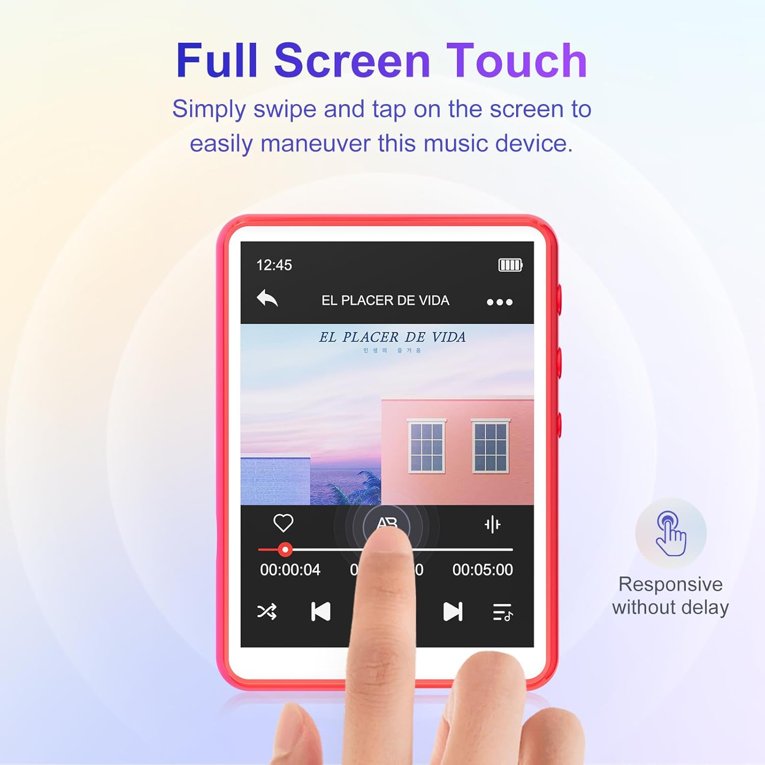 The Bluetooth MP3 player is equipped with a 2.4″ IPS Ultra HD touchscreen with full-screen control and touch, allowing you to operate the MP3 player more smoothly and supporting a one-touch lock screen.