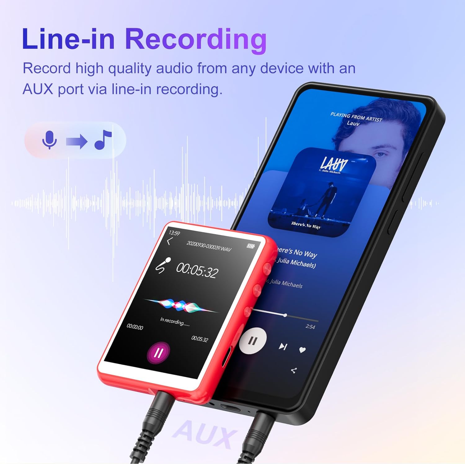 🎙️【Portable Voice Recorder】 – Up to 1536kbps BitRate,this MP3 player contribute a high quality recording sound. Meanwhile, there are Mic in and Line in recording for you to choose. Line-in Recording helps you record music from your audio devices without compromising on sound quality. In addition, FM Recording is also available.
