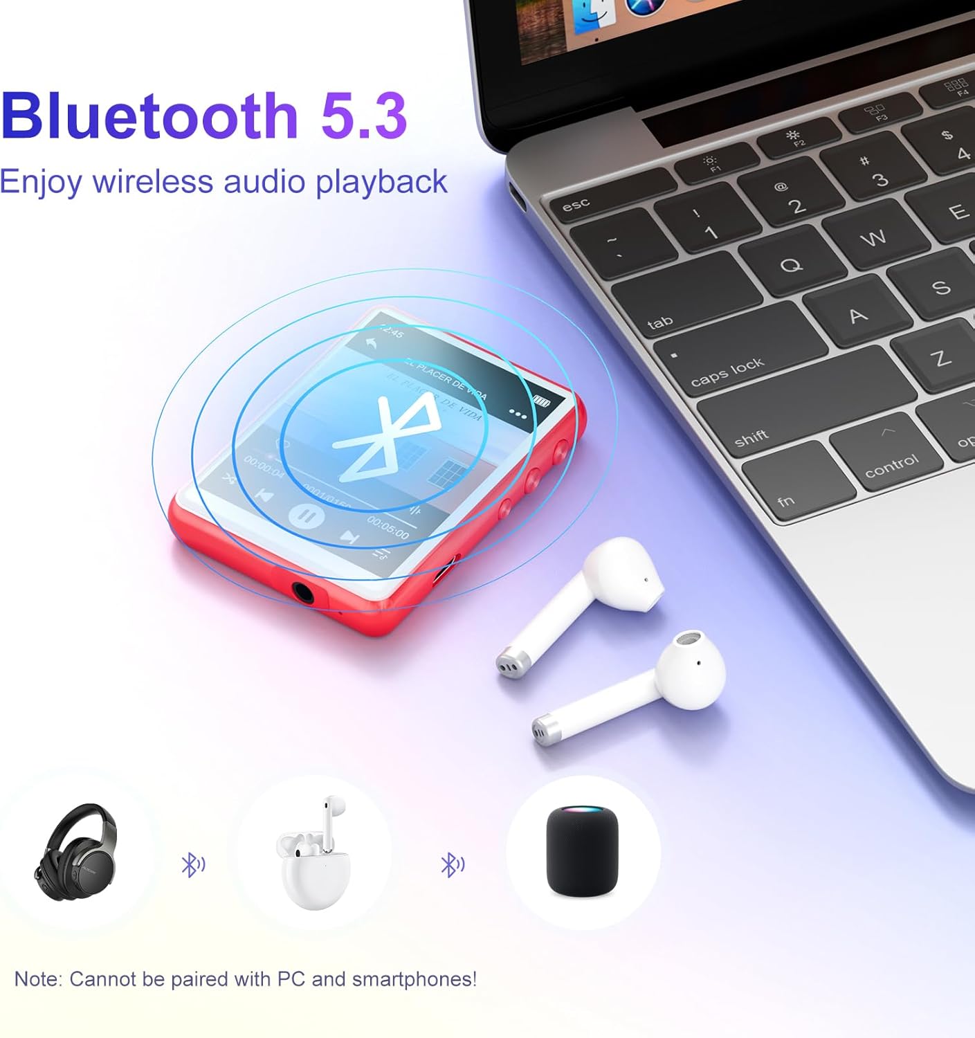 📱【Upgraded Bluetooth 5.3】 – MECHEN MP3 player adopts upgraded Bluetooth 5.3 chip, advanced AAC audio decoding, which can provide more stable connection, better compatibility, easy to connect with Bluetooth speakers or Bluetooth headset, (Note: Cannot connect with cell phone or PC)