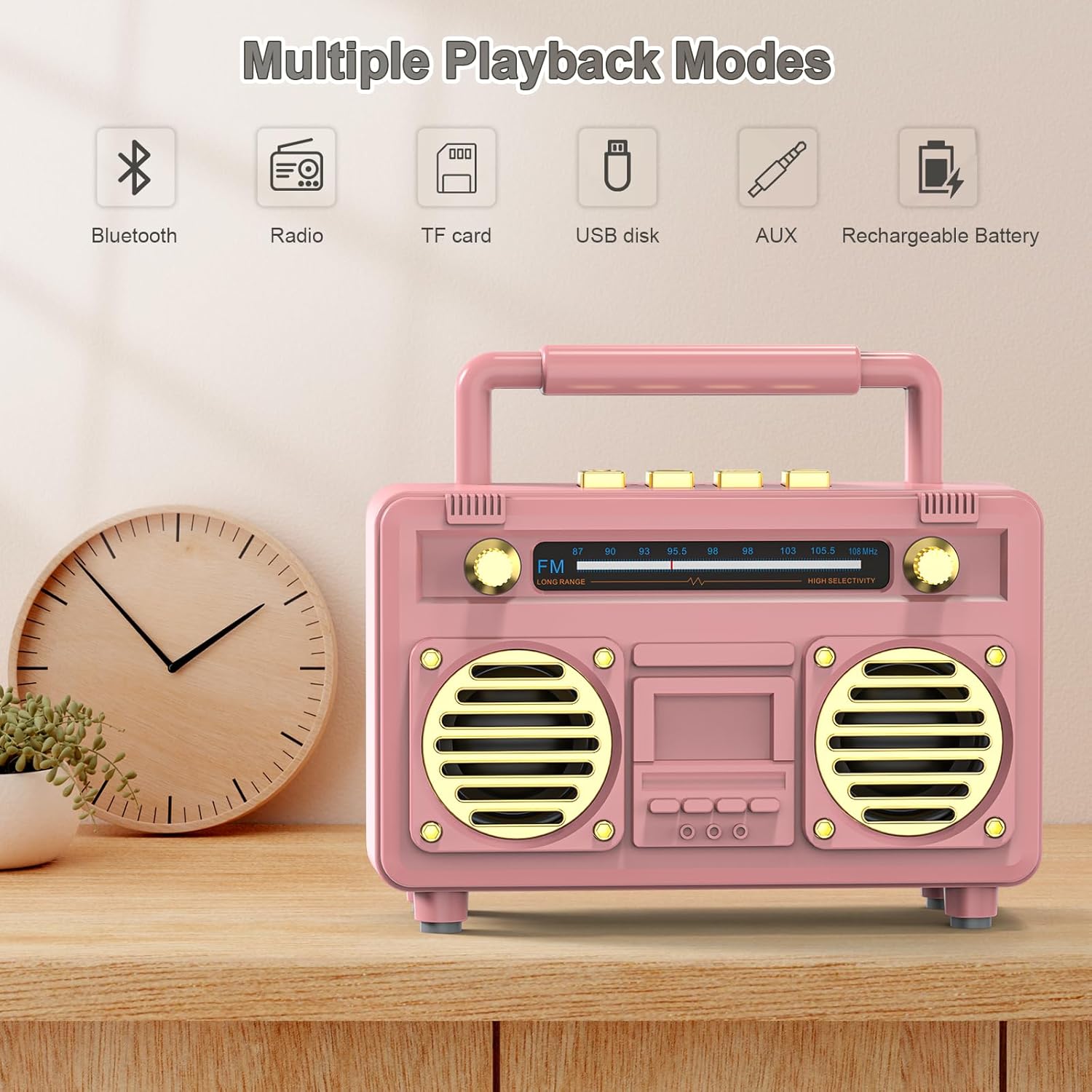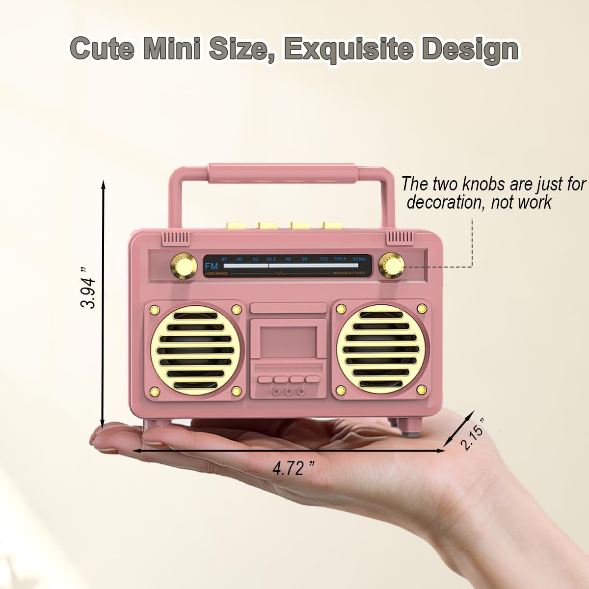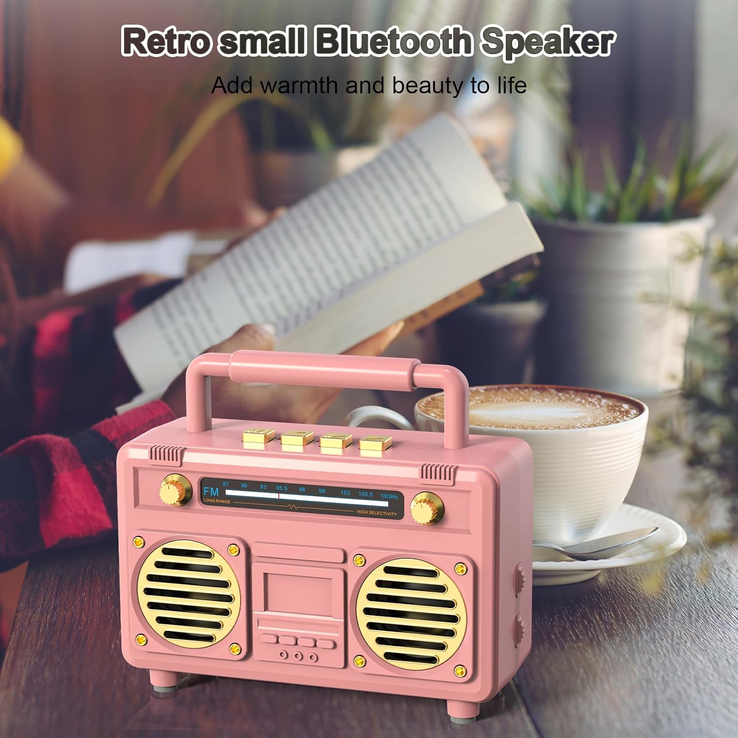 Mini Cute Bluetooth Speaker, Gift for Women Teen Girls, Pink Decor Aesthetic for Bedroom, Room, Desk, Office, Kitchen, Home Accessories with Small Vintage Radio Style, Wireless Speaker Support TF Card
