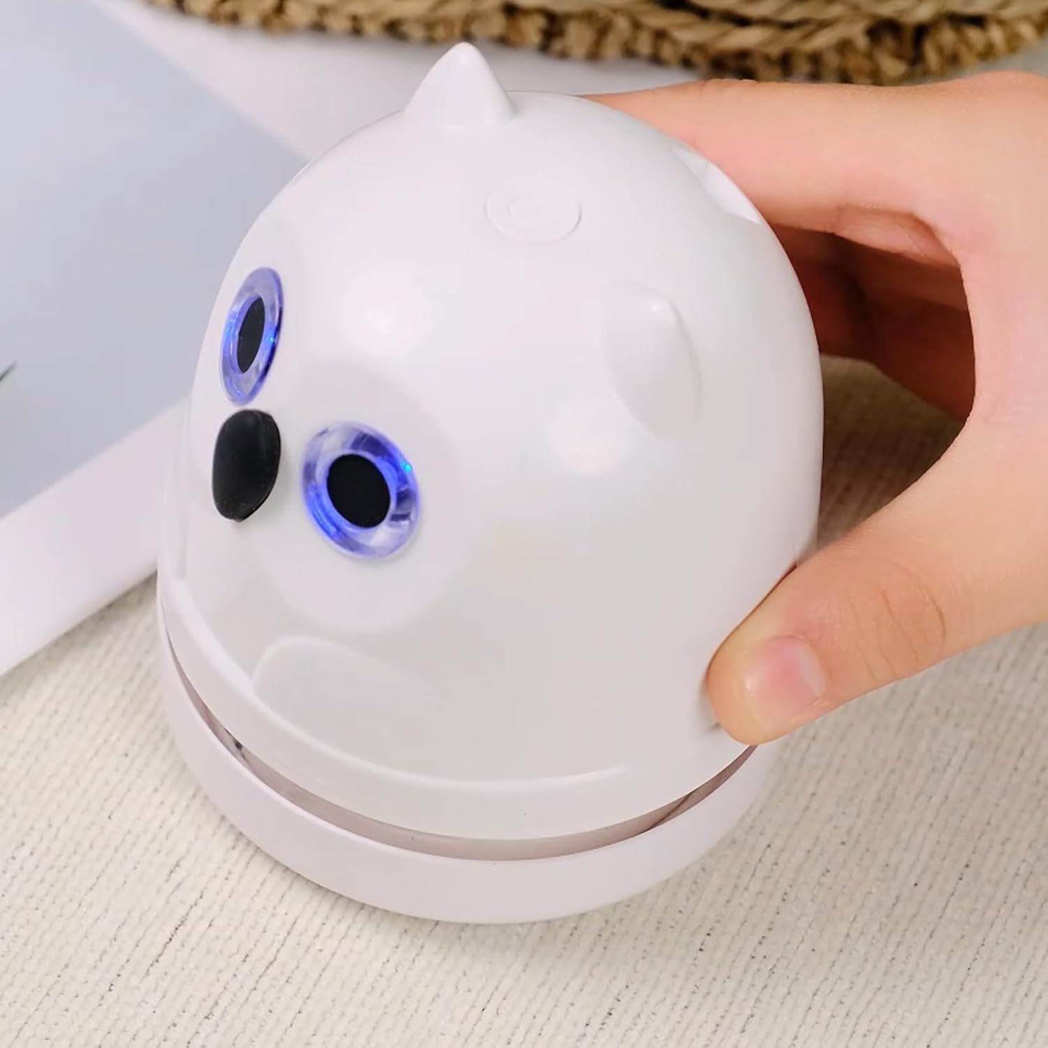 Cute & Functionality: The owl desktop vacuum cleaner with a cute appearance and owl vac eyes will light up during cleaning. It can easily clean up the relatively fine dust, eraser crumbs and large particles of bread crumbs, paper scraps and etc.