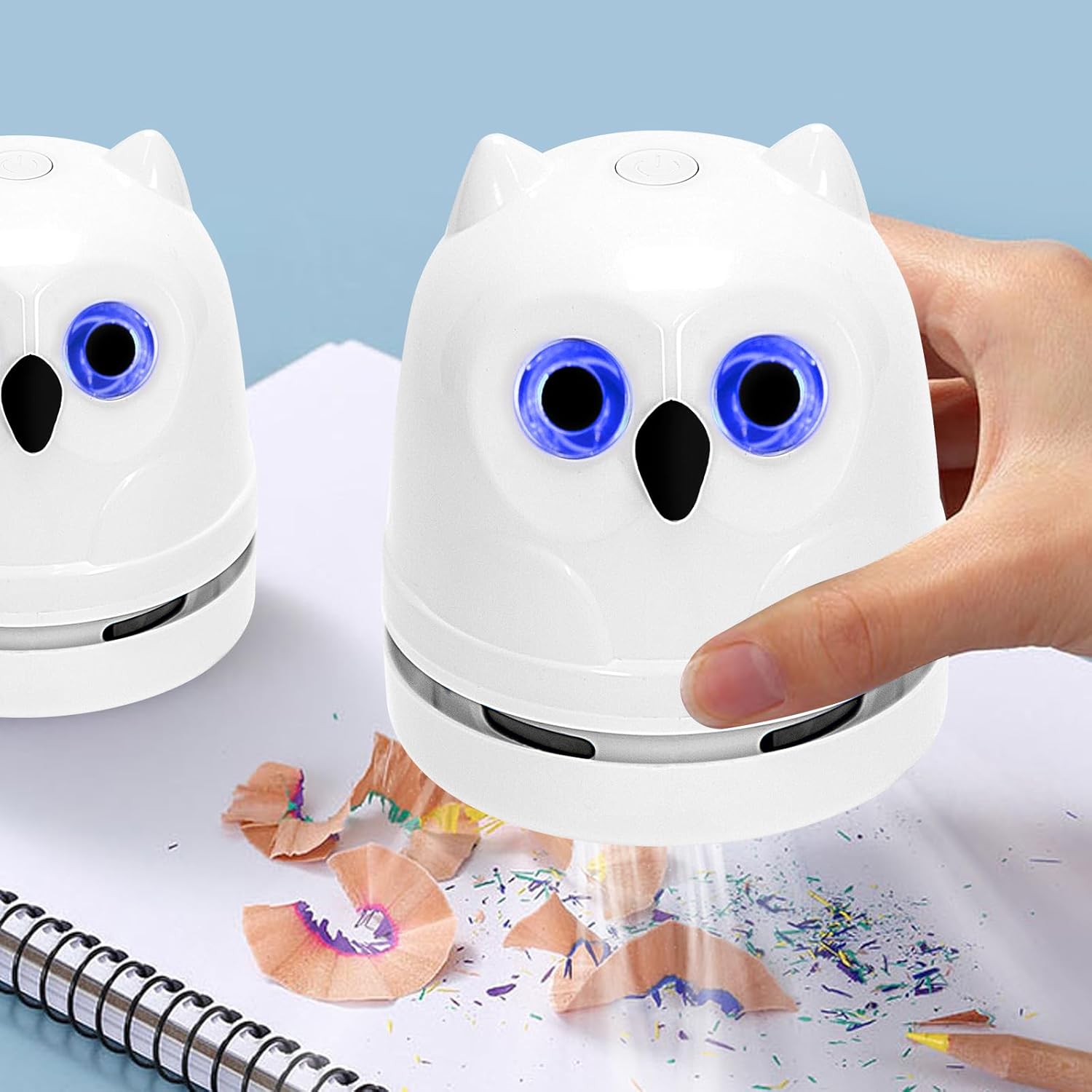 Precise & Cordless Cleaning: Owl crumb catchers can easily absorb eraser crumbs, pencil shavings and large debris, comes with detachable capture nozzle and perfect for clean pet hair and dust in different places that are hard to reach. No wire need during working and you can use the mini vacuum anywhere