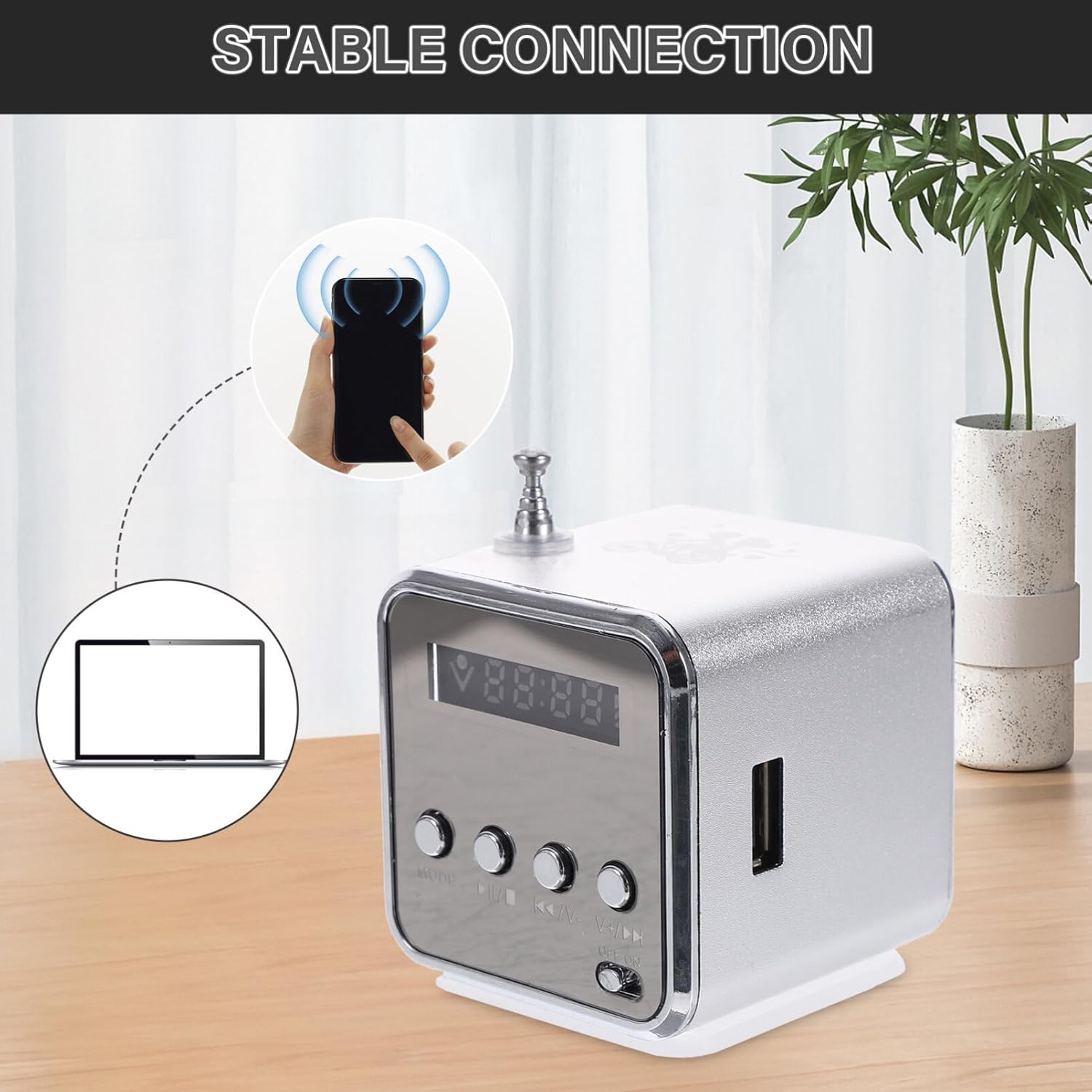 The item is a portable and practical mini digital speaker music player, which is popular and stylish in design, and features compact size and good sound quality to let you indulge in your favorite music anytime and anywhere.