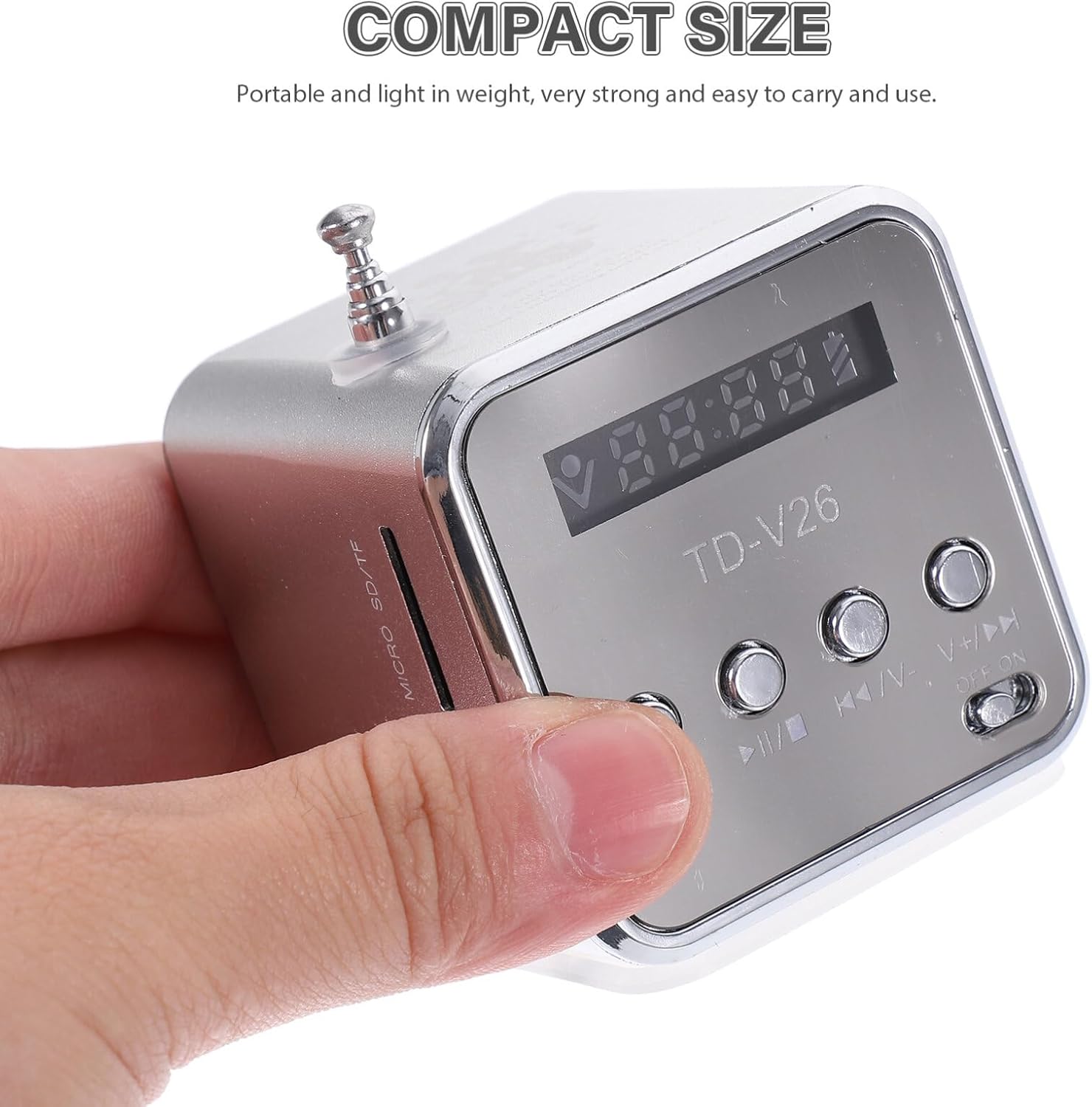 The item is a portable and practical mini digital speaker music player, which is popular and stylish in design, and features compact size and good sound quality to let you indulge in your favorite music anytime and anywhere.