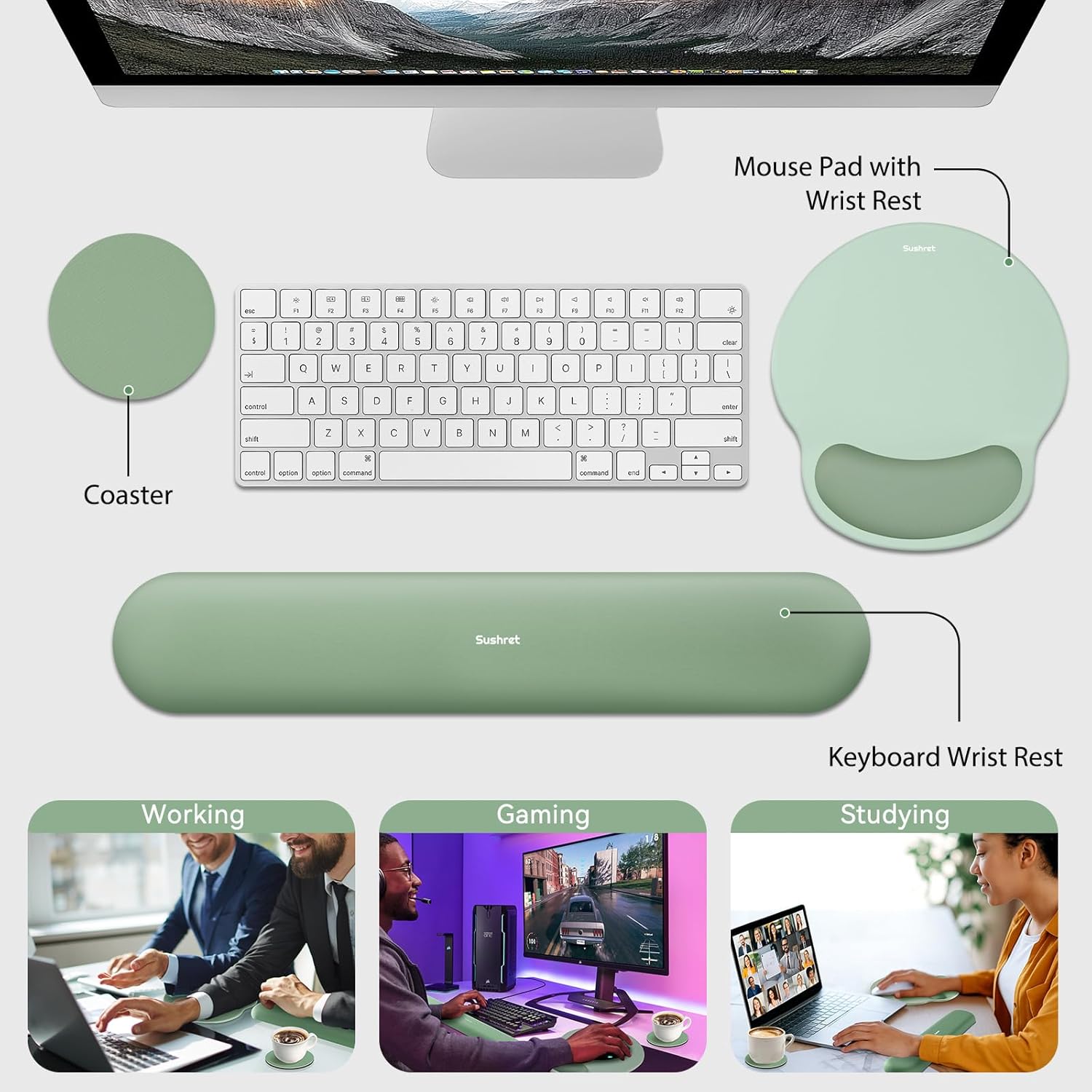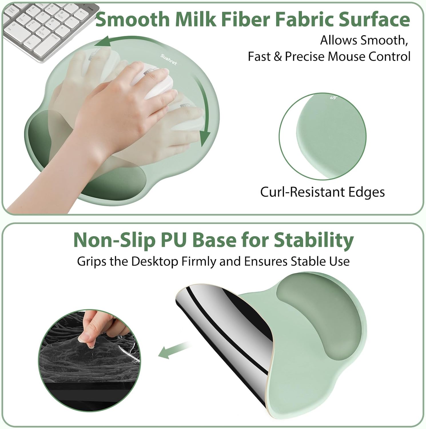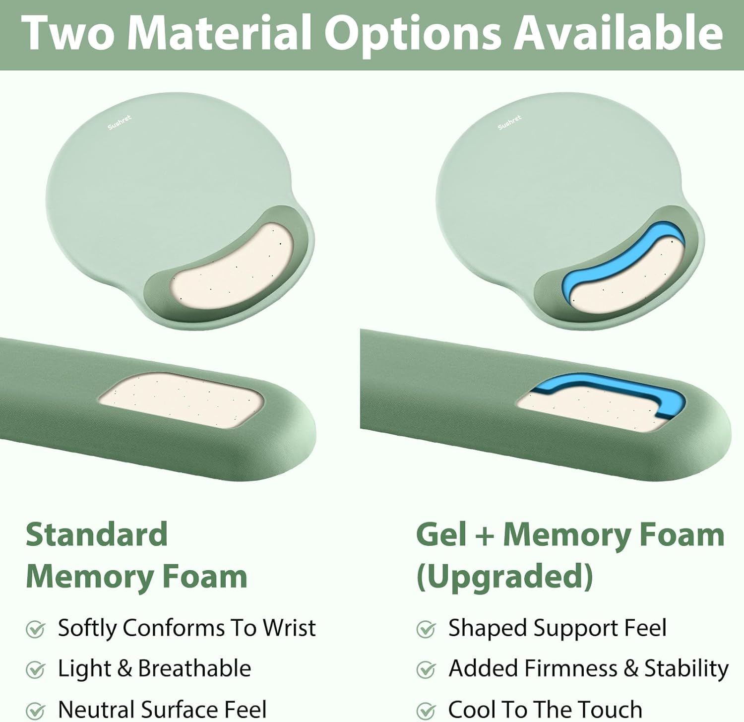 Smooth, Breathable & Long-Lasting Comfort: The keyboard wrist rest and mouse pad with wrist support both feature a smooth, breathable milk fiber fabric surface for all-day comfort. On the mousepad, this surface also ensures precise and effortless mouse movement. Inside, high-density memory foam slowly rebounds after use, maintaining its shape and support through daily use
