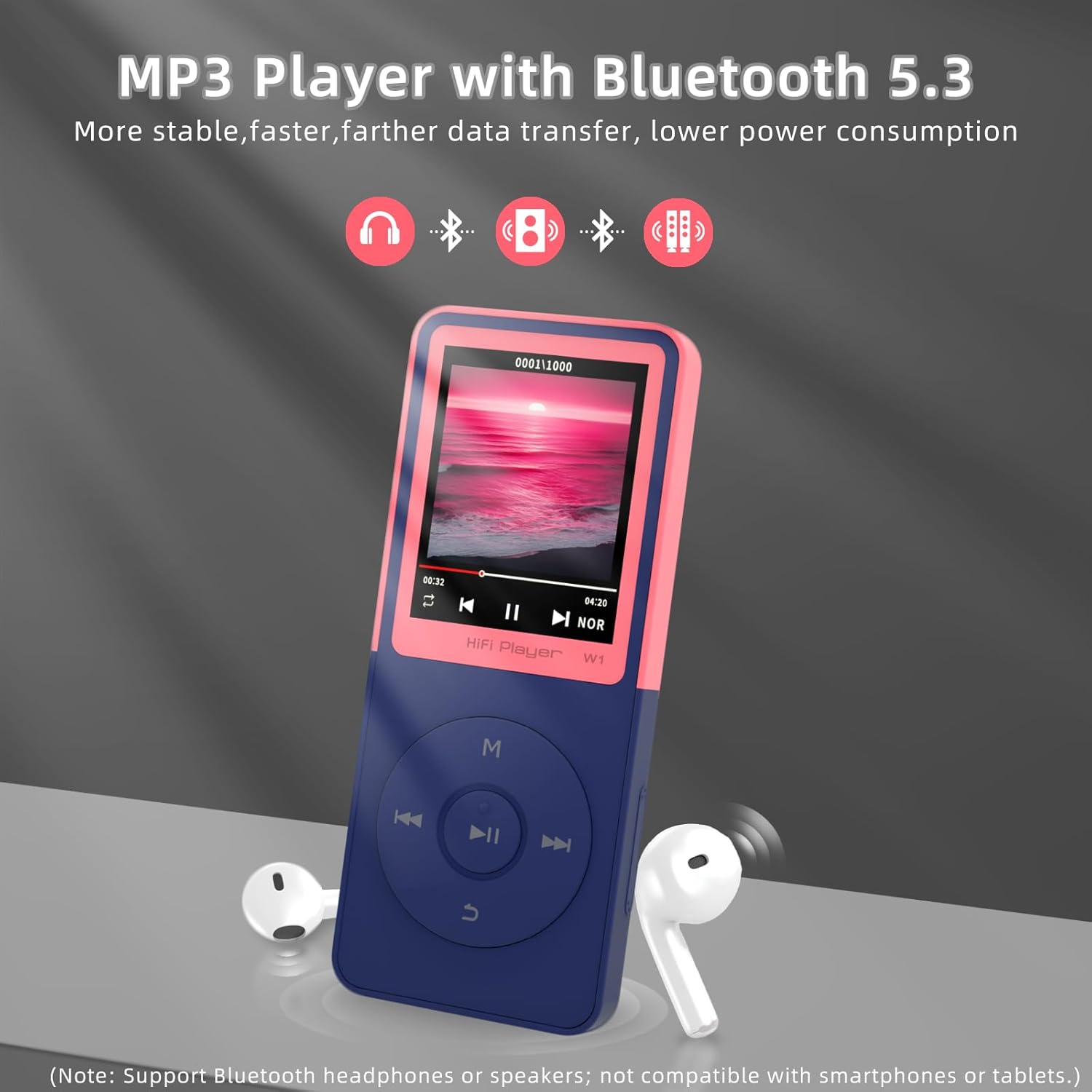 【Music Player with Bluetooth, Stable】 This bluetooth mp3 player ensures stronger interference resistance and more stable connections. Support connection of bluetooth headphones and bluetooth speakers, with an extended transmission range and lower power consumption. This mp3 player with bluetooth effectively saves battery life but does not pair with phones or tablets.