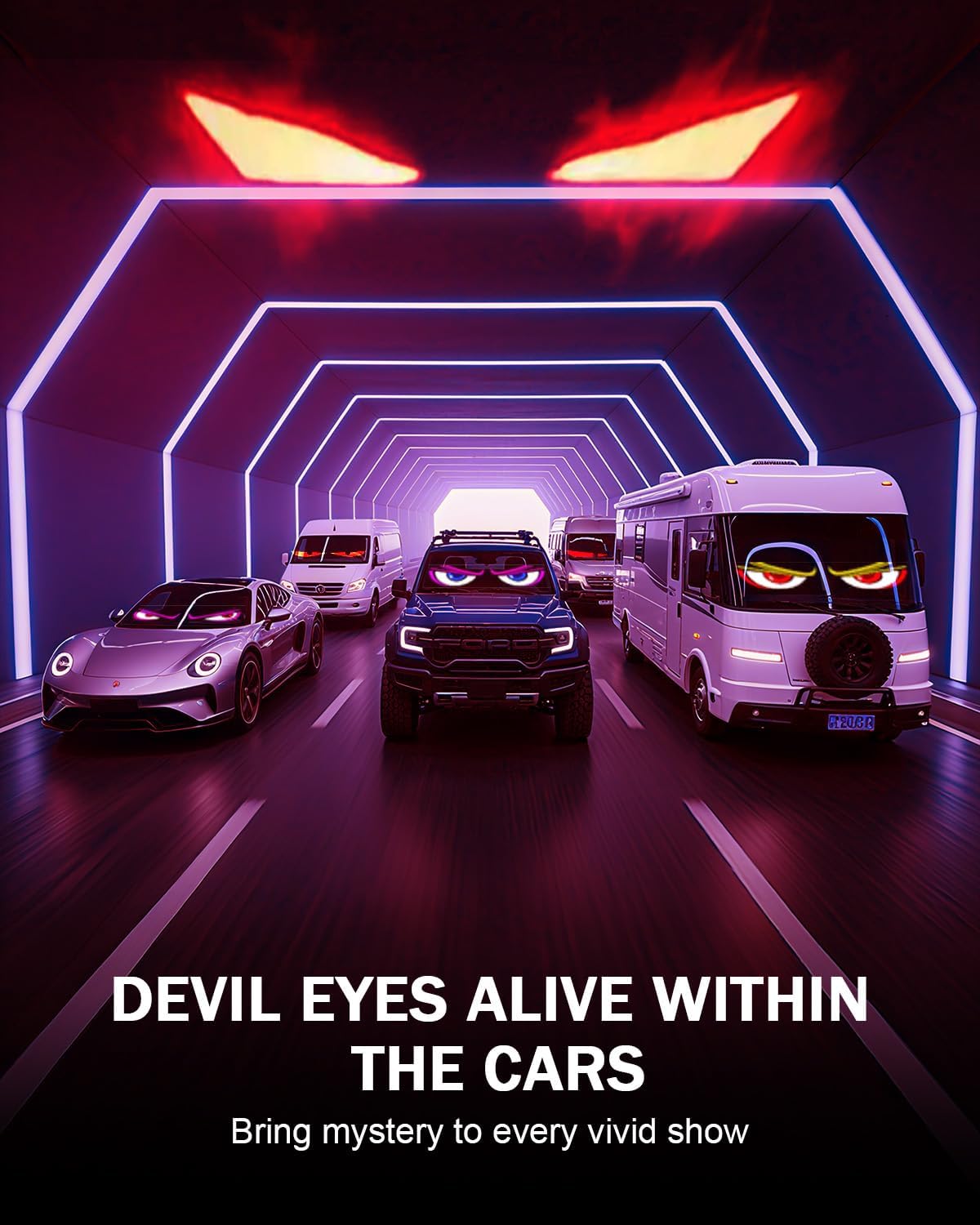 [Ultimate Car Demon Eye Lighting] Driven by an innovative smart chip, the two devil eye screens remain perfectly synchronized for an unmatched visual experience—an industry-first innovation! Amplify your drive with 10x the excitement. This stunning LED upgrade brings unbeatable energy and eye-catching brilliance to every journey!