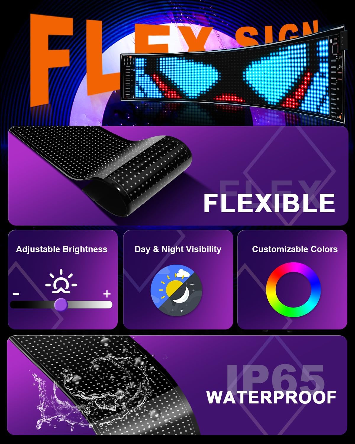 [Easy Setup, Amazing Performance] Our customizable LED car display boasts a high-quality, flexible LED array paired with an intuitive circuit design. Featuring a sharp 16×64 pixel resolution and a durable IP68 waterproof polymer adhesive layer, it adheres securely to any surface and removes cleanly without residue. Just plug in the included 13ft USB cable, and you’re ready to light up the road in no time!