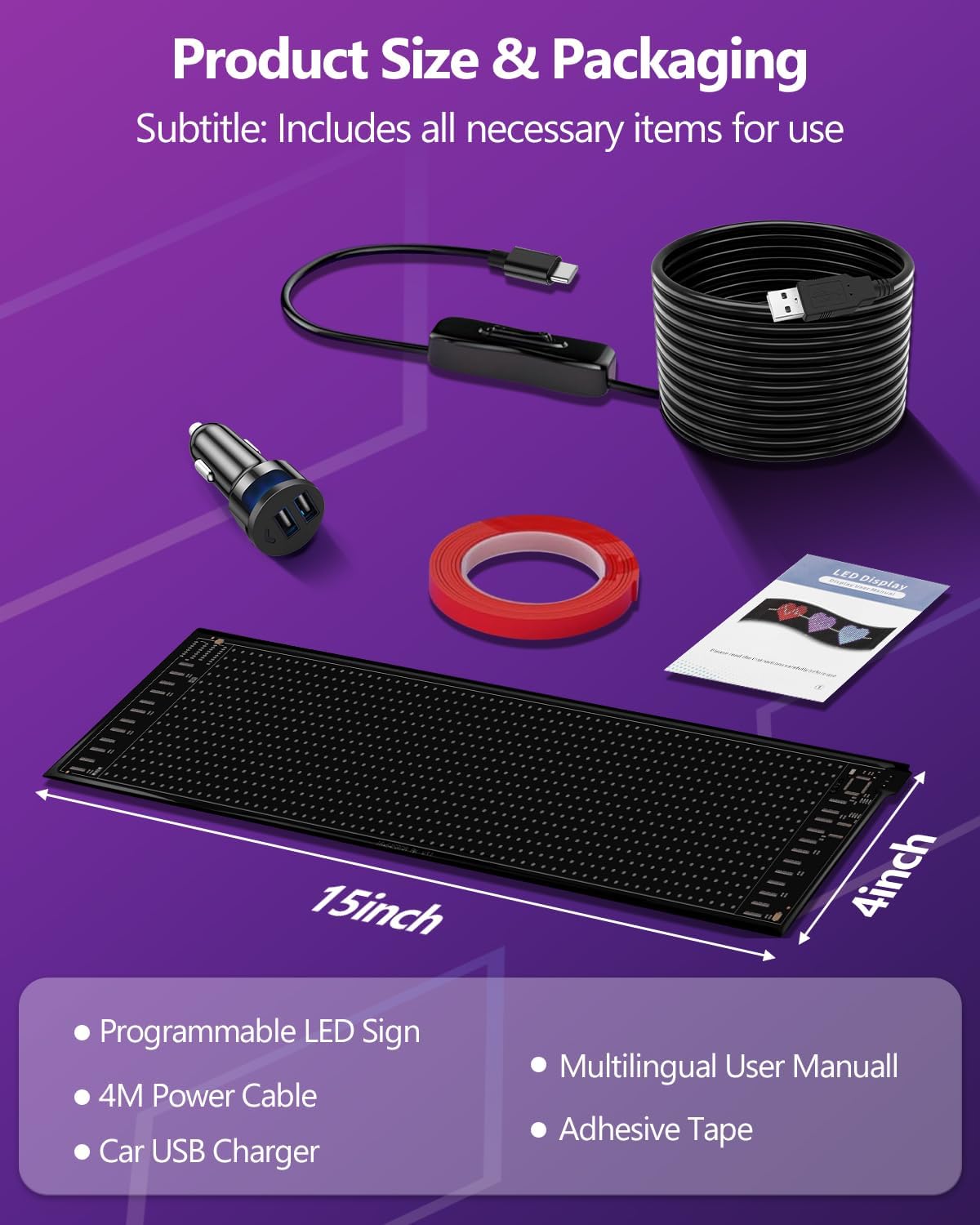 [Industry-Leading Innovative Upgrade] The 2025 Multi-Functional 1pcs 15in x 4in LED Car Sign takes performance to new heights with advanced full-color LED bead technology. Bursting with brilliant brightness, it’s crafted for maximum effect—equipped with a programmable timer for intelligent control and incredibly efficient power usage. With a dazzling full-color light show running at up to 60FPS, it commands attention in ways you’ve never experienced before.