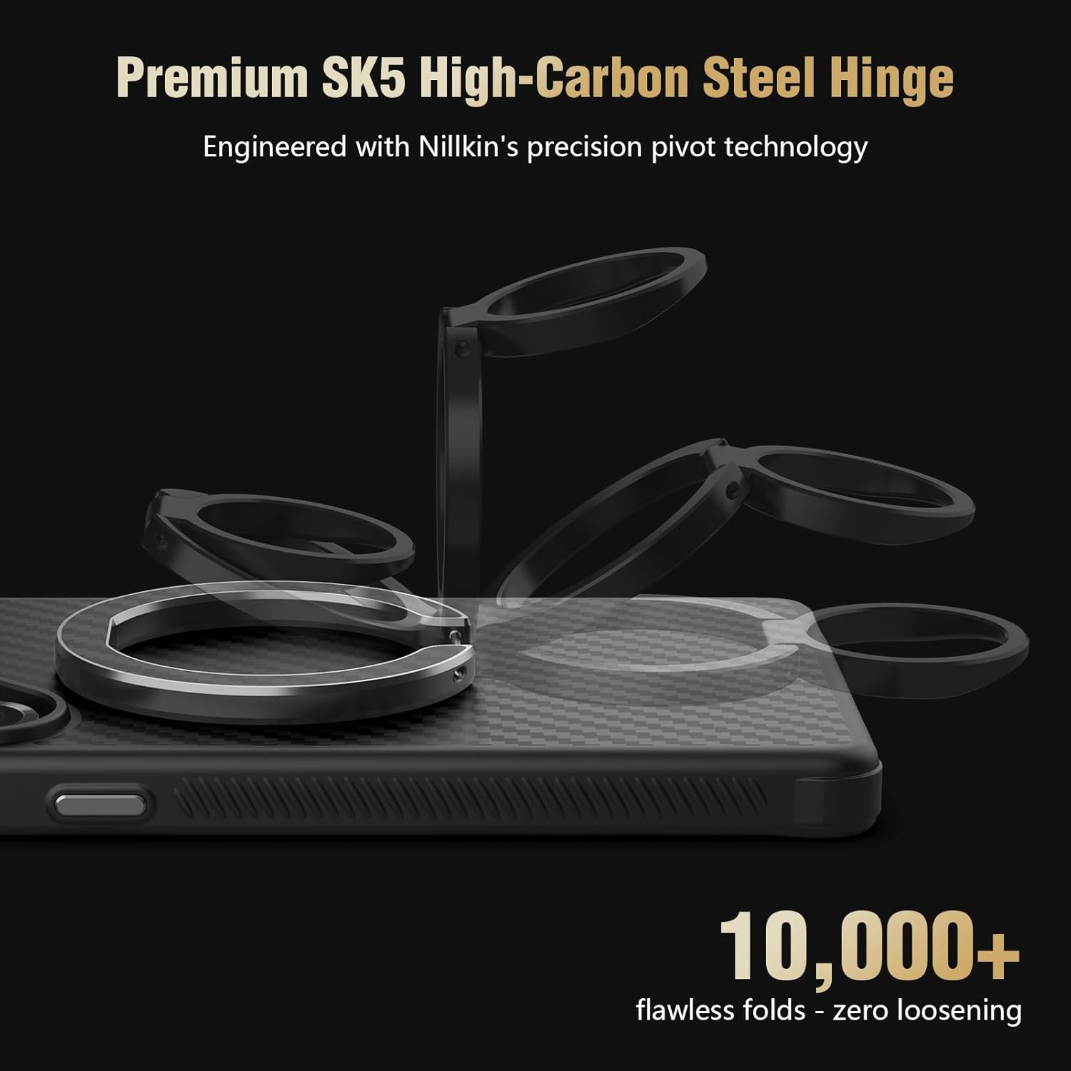 Tri-Ring Ergonomic Grip + Kickstand – Magnetic phone holder has triple-ring structure with SK5 high-carbon steel torque module offers secure pinch-grip, handheld comfort, and stable desktop viewing