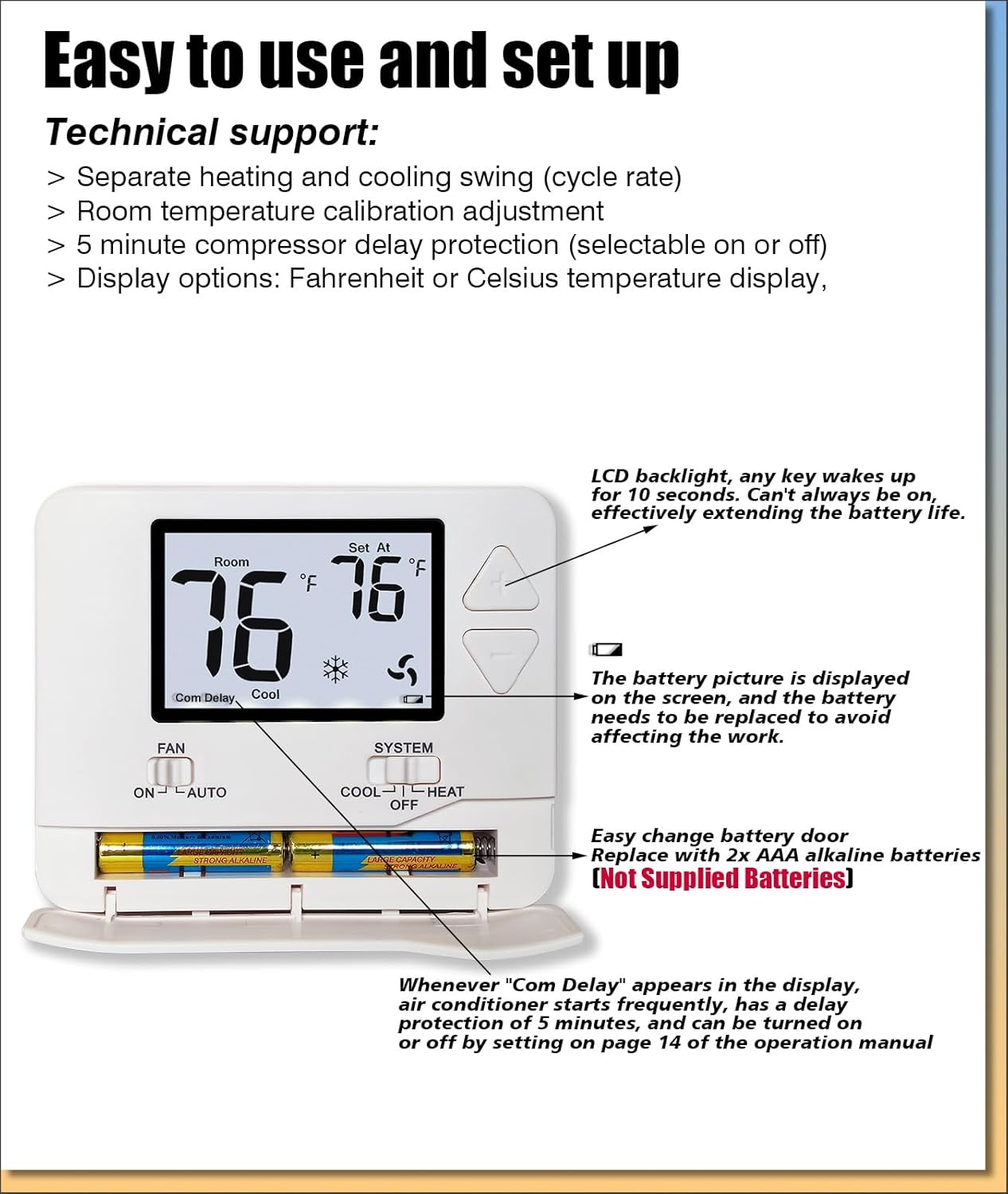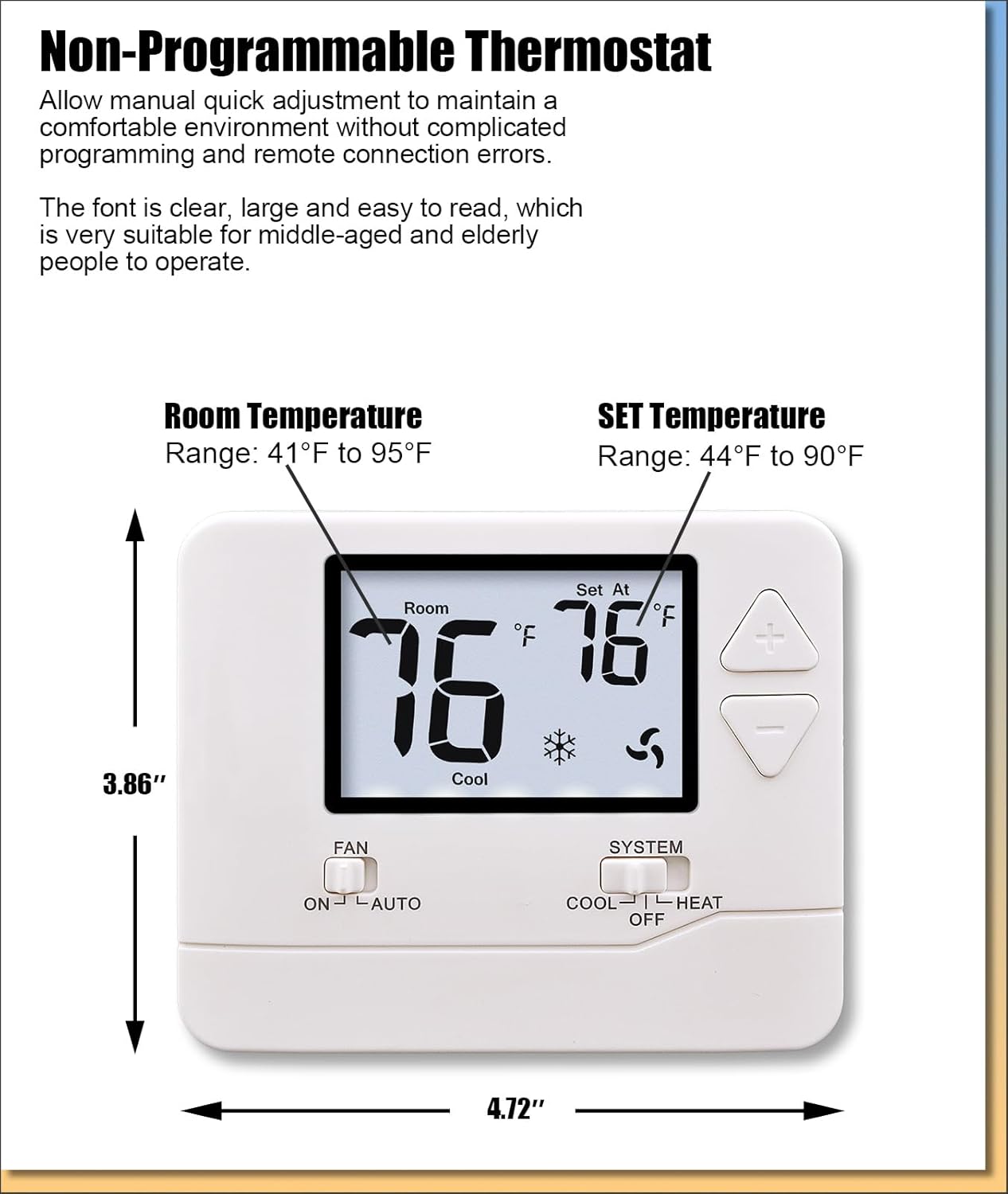 Non Programmable Thermostat for Home 1 Heat/1 Cool Single-Stage Compatibility, White Backlight