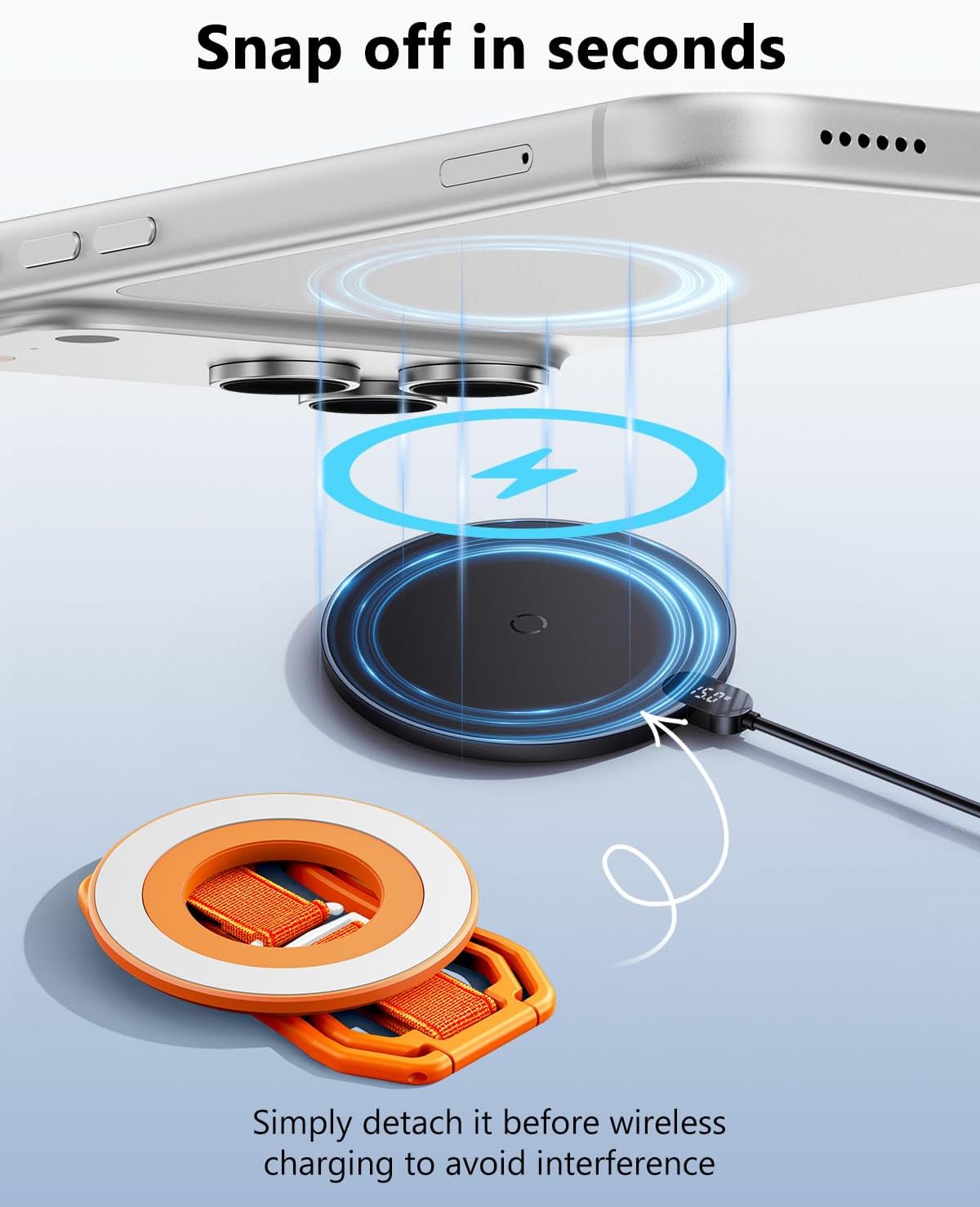 【Convenient for Wireless Charging】 This MagSafe phone stand easily slides off without leaving any sticky residue, allowing for continued wireless charging.When you need the stand function, simply place this MagSafe kickstand on the back of your phone for instant alignment and adsorption.