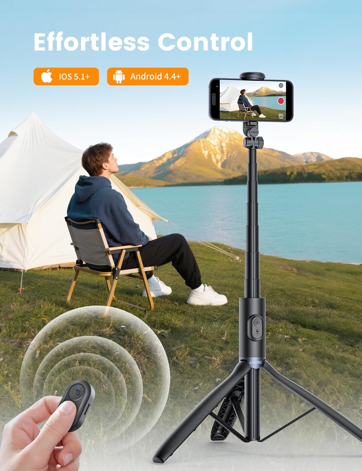 【Wireless Remote & Stable Base for Steady, Hands-Free Shooting】This mobile tripod stand for phone with remote features a built-in controller for effortless selfies, group shots, and vlogs—no assistance needed. The portable tripod selfie stick reinforced base and non-slip feet keep your shots stable on various surfaces, ensuring clear, shake-free photos and videos indoors or on the go.