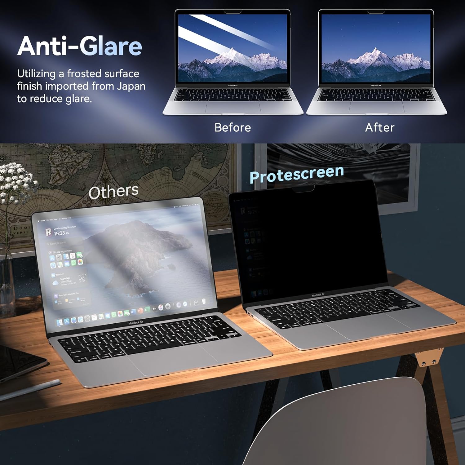 【Compatible Devices】Protescreen privacy screen compatible with MacBook Air 13 inch (2018, 2019, 2020, 2021, M1) / (Model: A2337, A1932, A2179) and MacBook Pro 13 inch (2016, 2017, 2018, 2019, 2020 , 2021, 2022, M1, M2) / (Model: A1706, A1708, A2159, A1989, A2251, A2289, A2338). Please check your MacBook model before ordering.