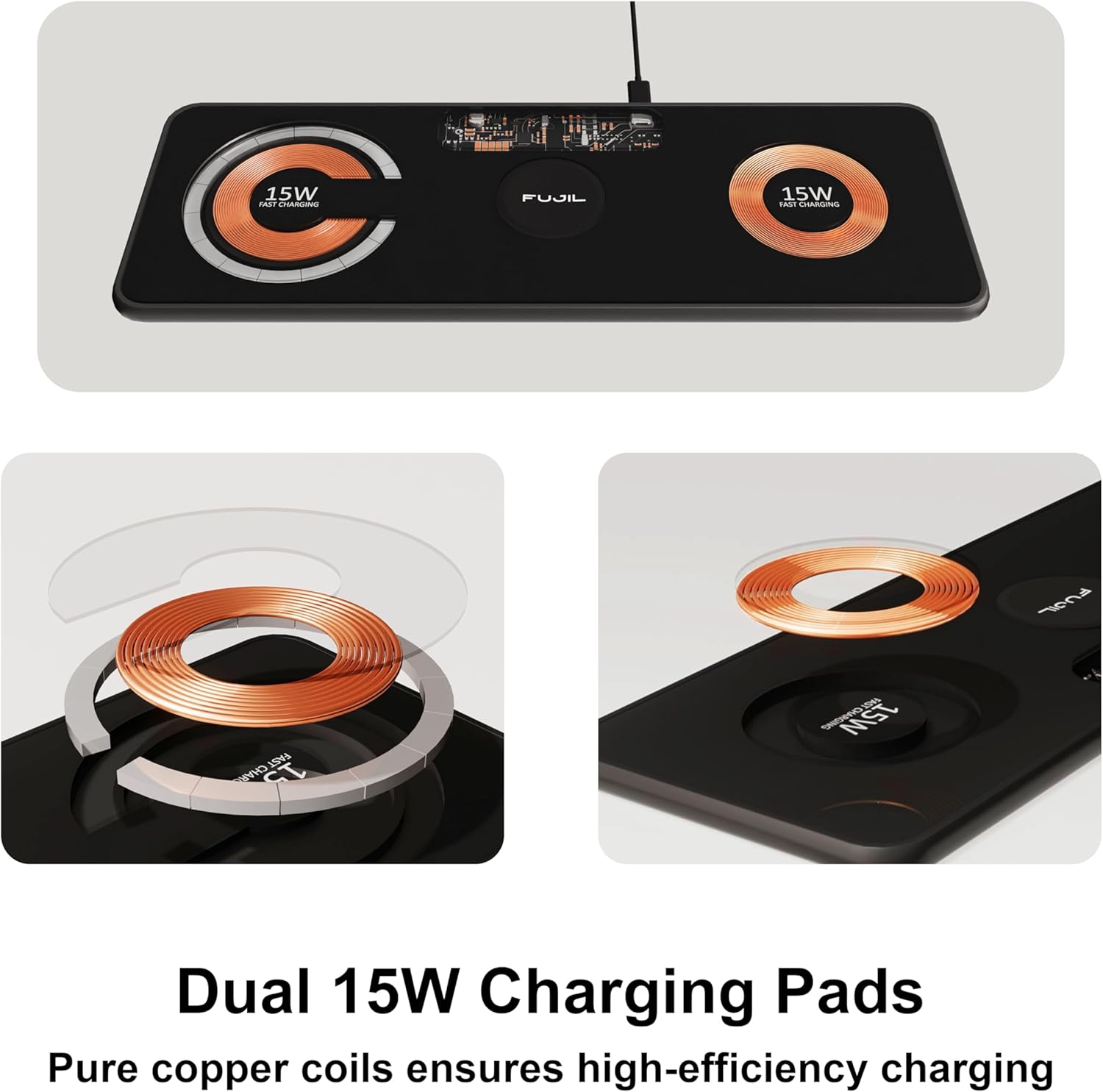 TRANSPARENT DUAL 15W PADS: Two powerful 15W charging pads with a sleek, see-through design