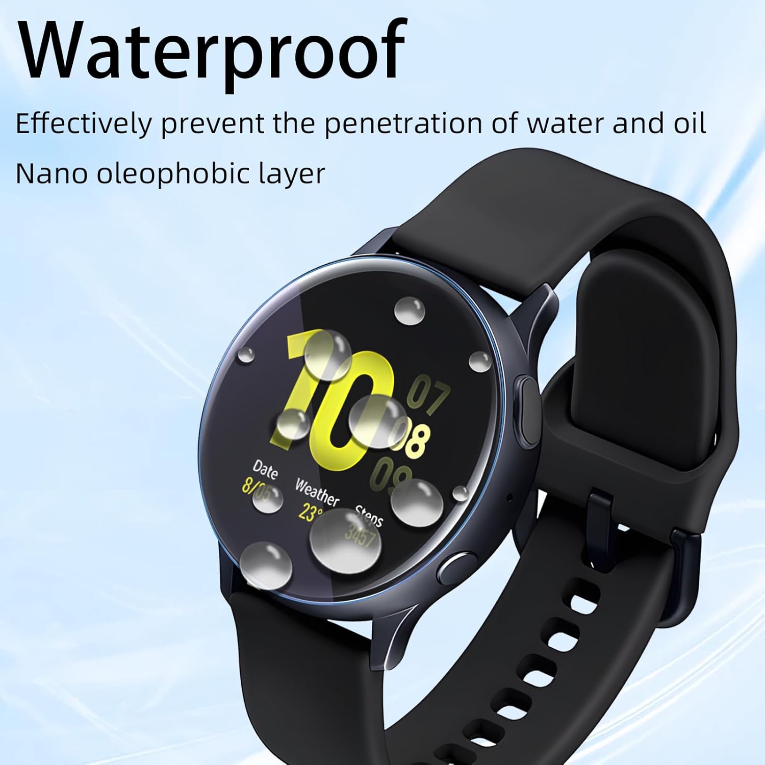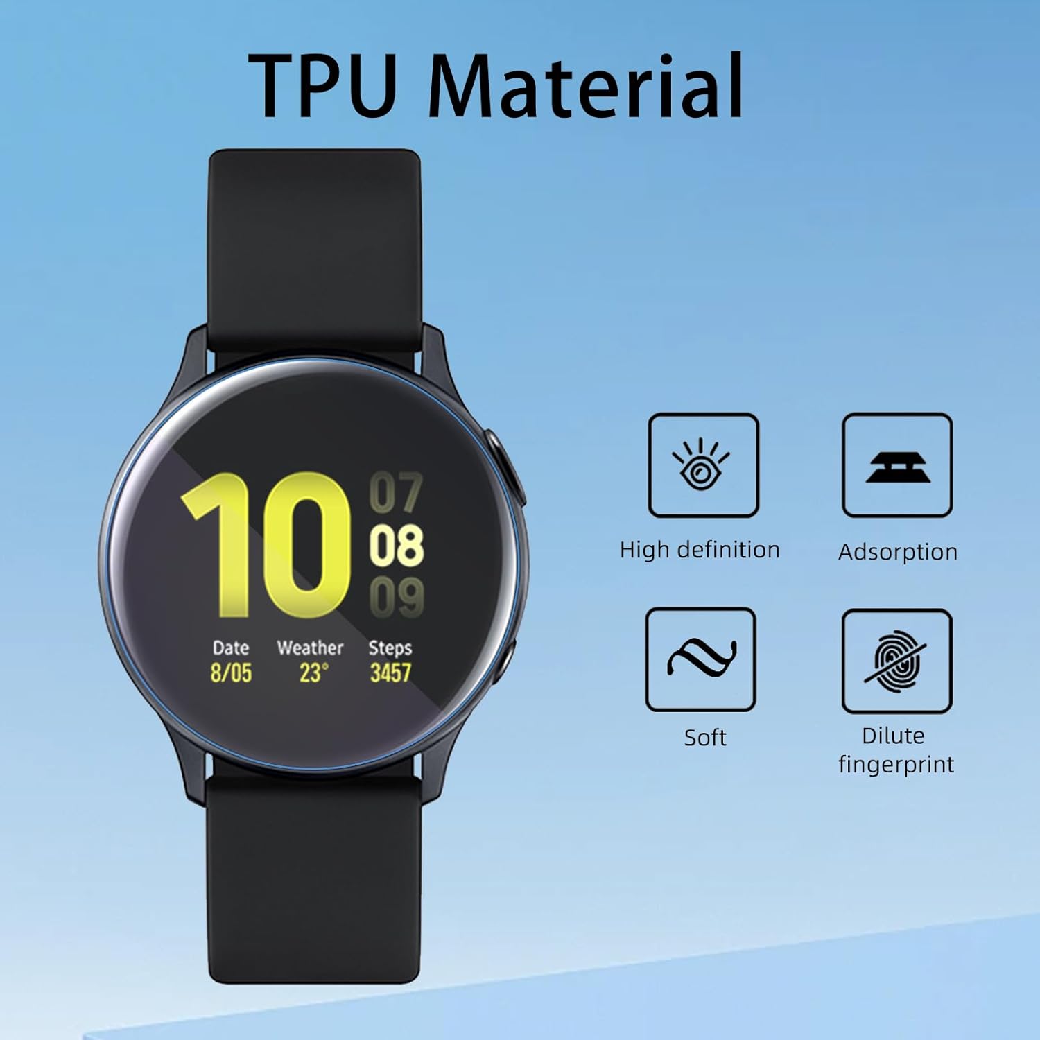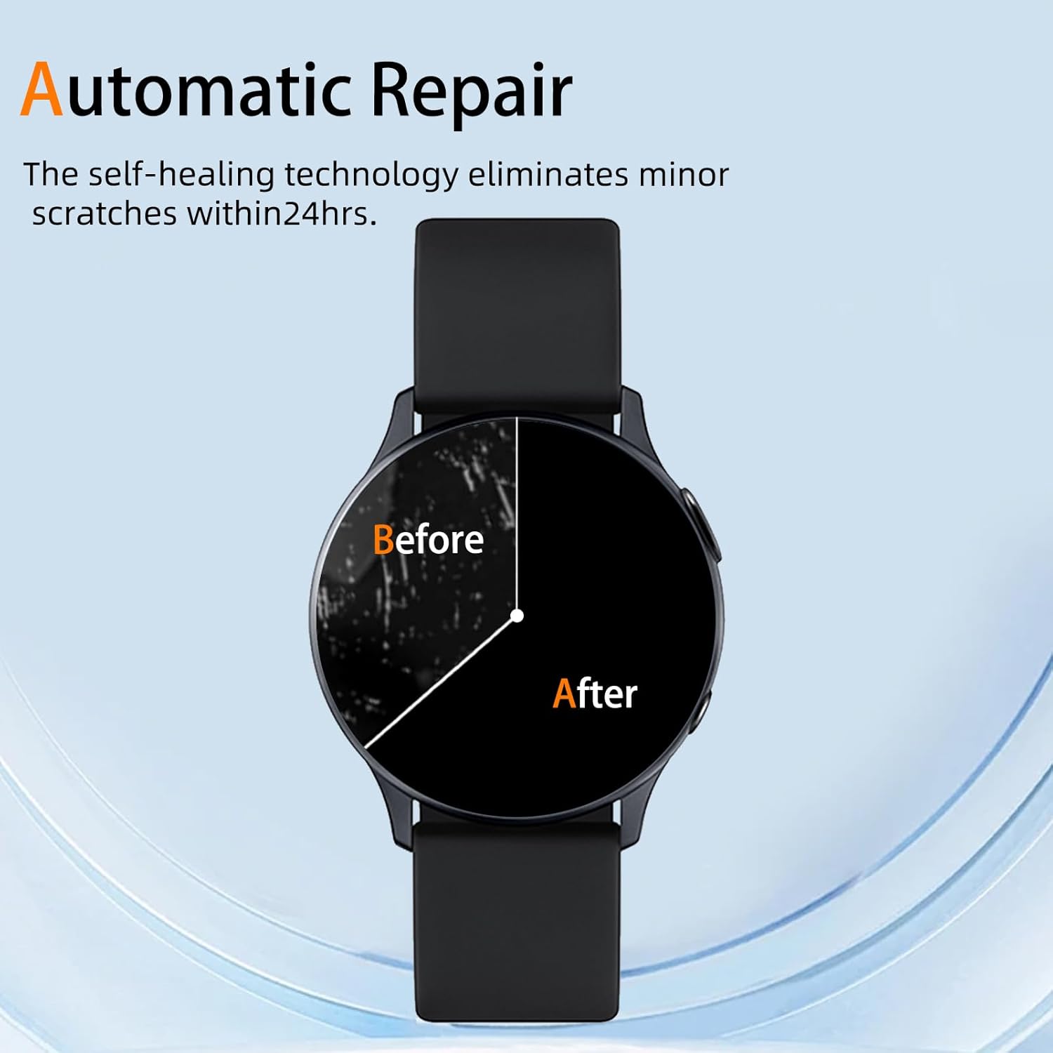 【Product Material】 The SAMSUNG Galaxy Watch Active2 40mm screen protector is made with premium Flexible TPU material (Not Glass) with an oleophobic and hydrophobic coating, ensures scratch protection with no residue when removed and reduces fingerprints, oil, and sweat. It is repairable and any scratches or bubbles disappear automatically within 24 hours.
