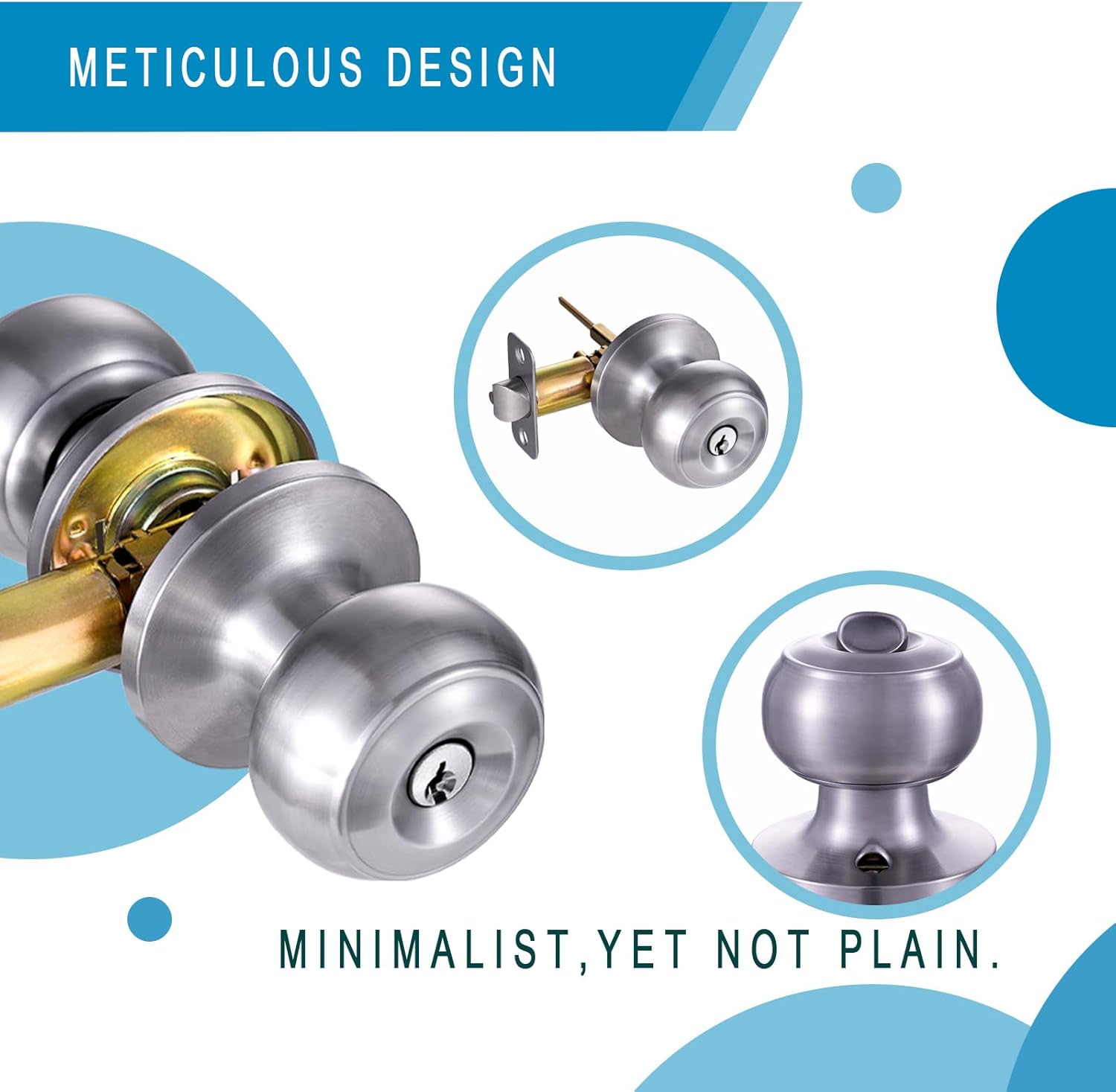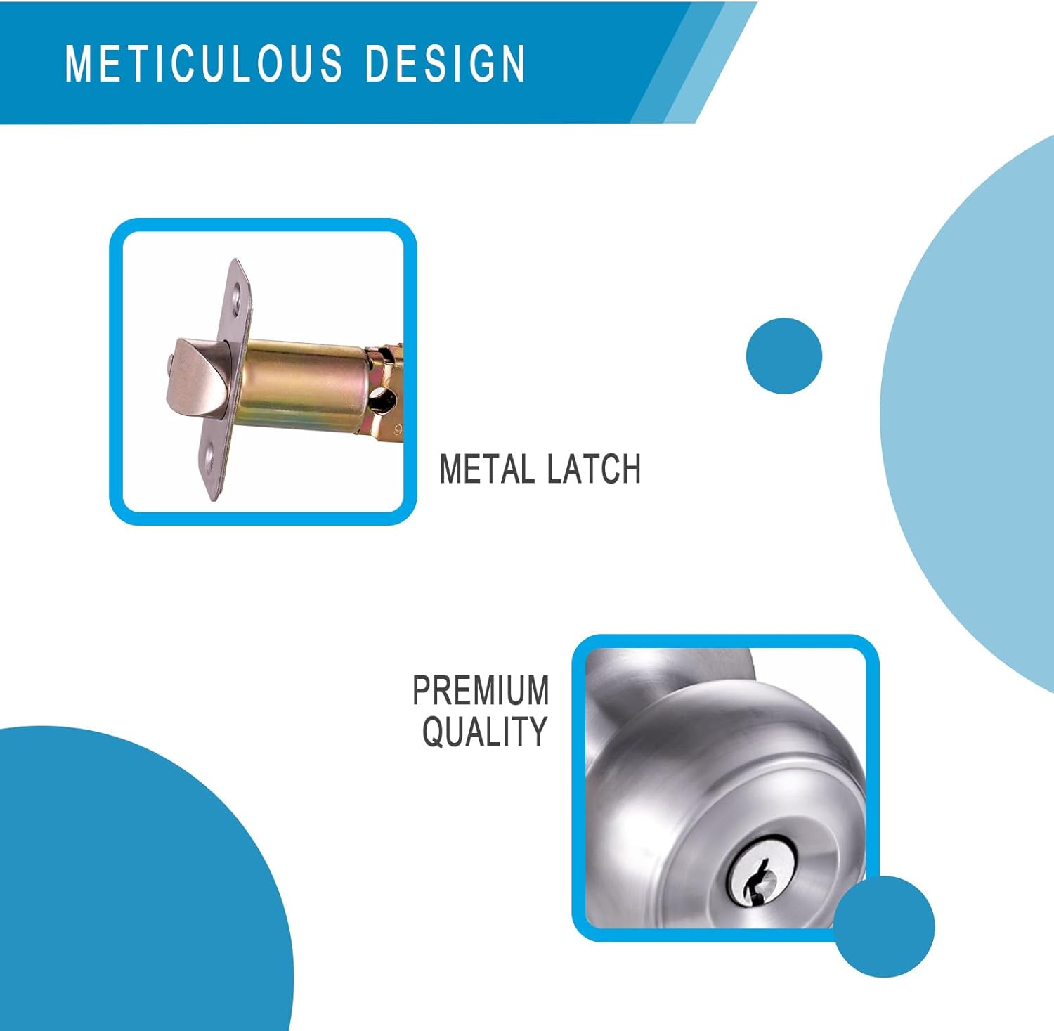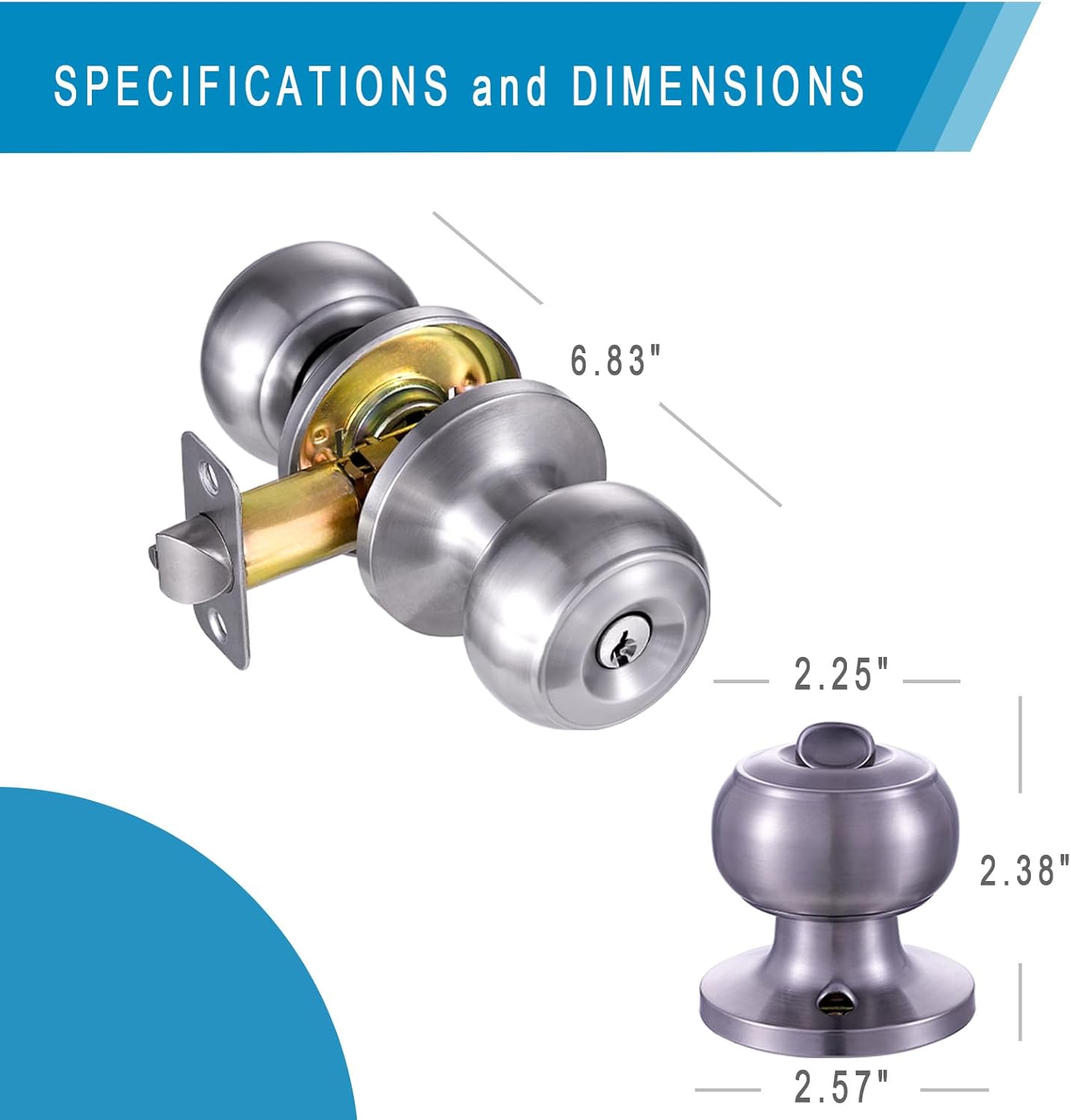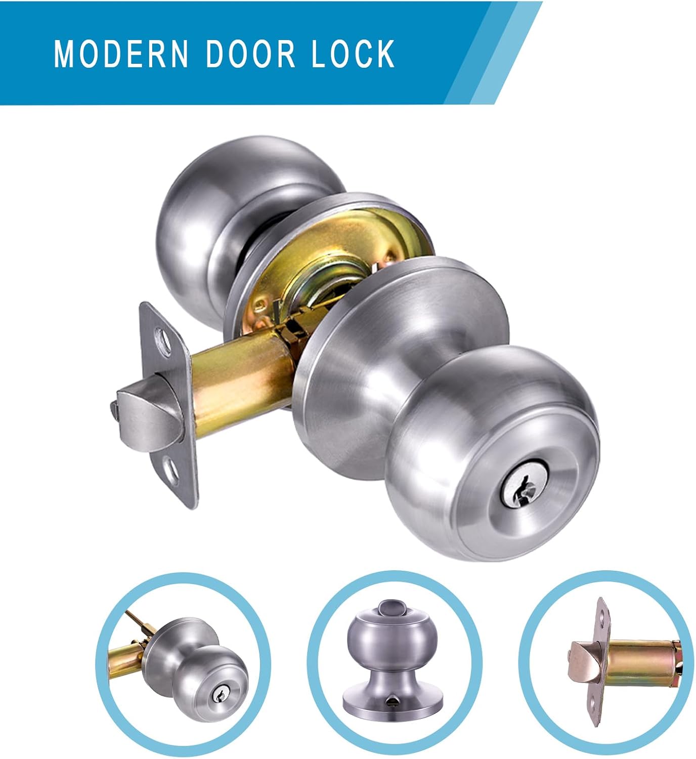 KEYED ENTRY (Keyed Alike): This door knob features a keyed entry system, allowing you to lock it from the inside and unlock it with a key from the outside. Ideal for entrance doors, bedrooms, bathrooms, and other areas requiring privacy.