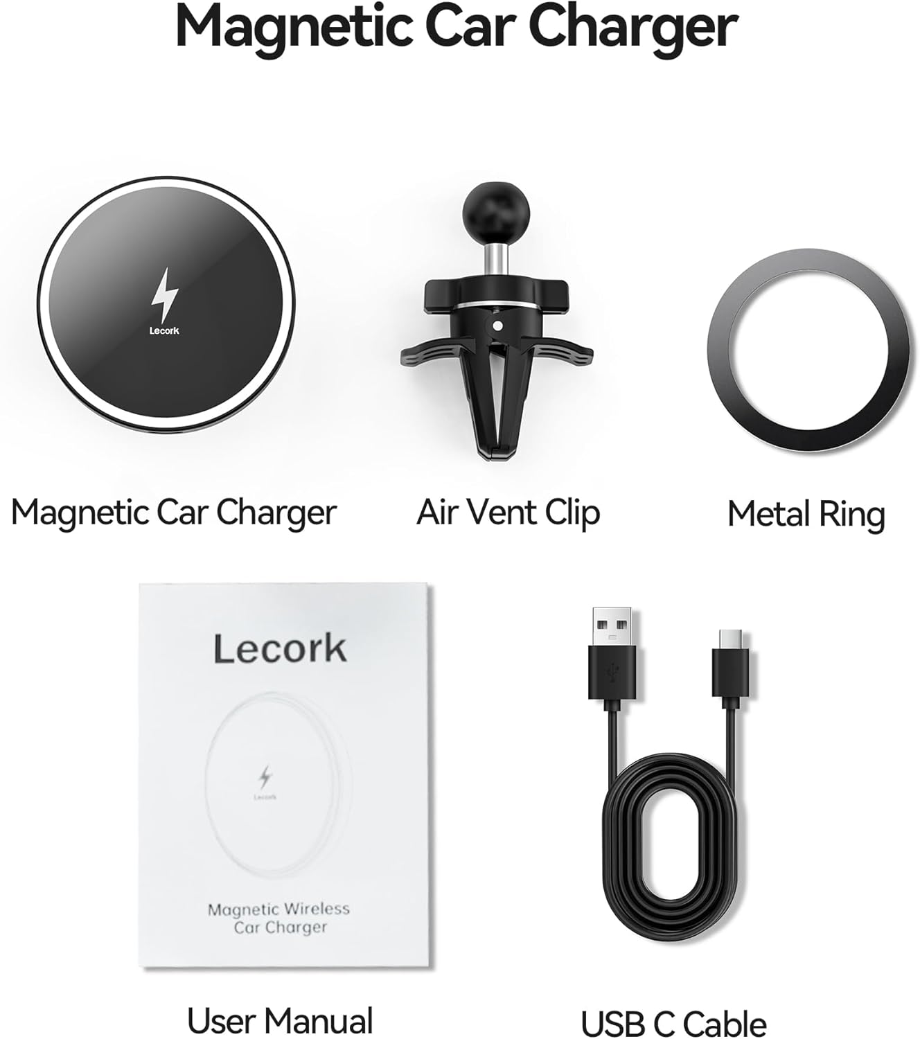 for Magsafe Car Mount, 15W Magnetic Wireless Charger for iPhone, Magsafe Air Vent Car Holder Charger for iPhone 16 Pro Max/16/15/14 13 12, Samsung S25/S25+/Ultra, RGB LED Design