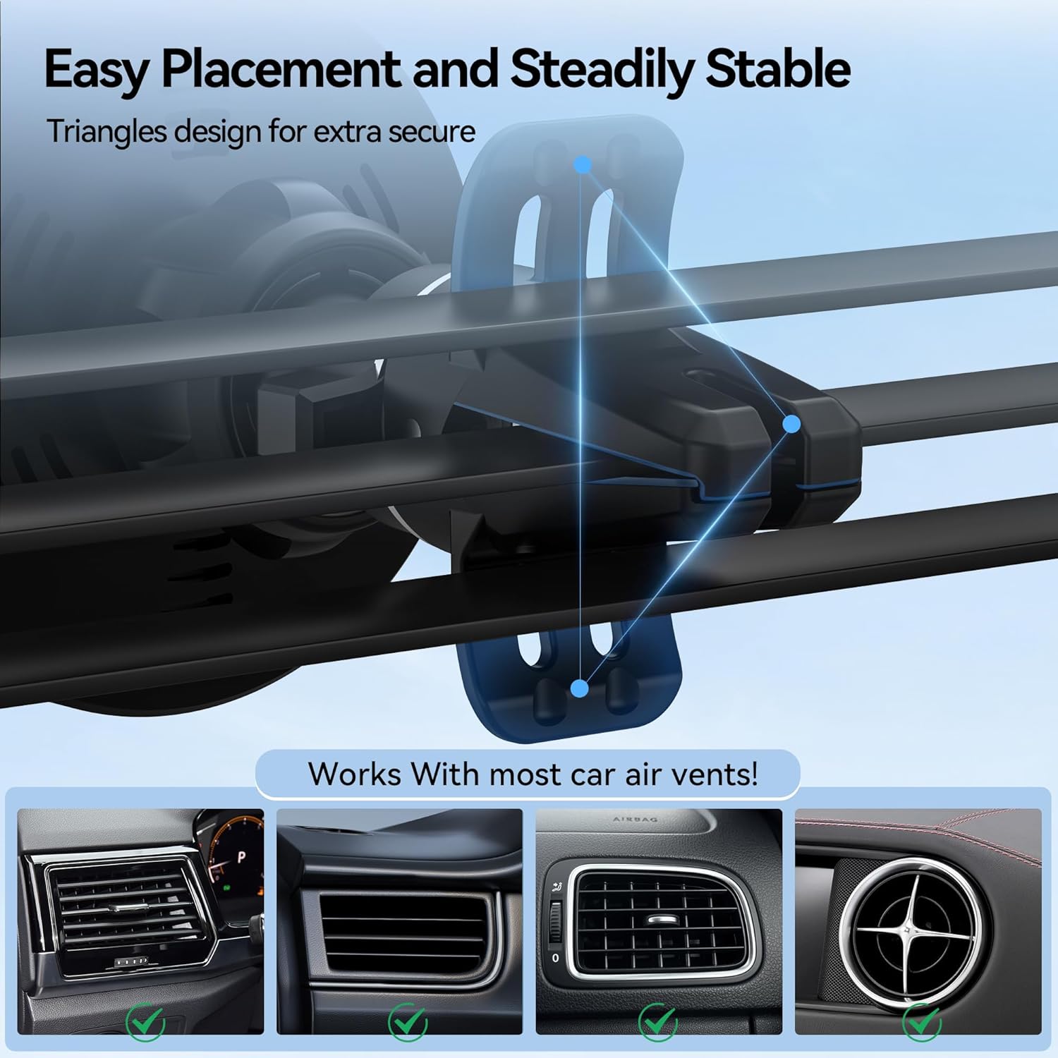 15W Wireless Fast Charging: Compatible with MagSafe, our wireless car mount charger supports up to 15W fast charging, powering your iPhone 16 Pro from 0% to 50% in just 30 minutes. Charge your phone while navigating, calling, playing music, and more — say goodbye to battery anxiety during driving.