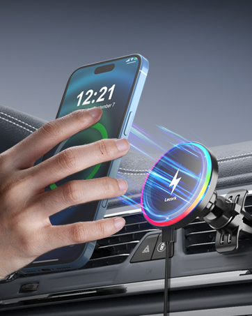 Easy to Use & Stylish Design: Simply place your phone on the charger — no complicated setup required. The 360° rotating ball joint allows for easy one-handed switching between portrait and landscape modes for optimal navigation. Vibrant outer RGB LED lighting adds a dynamic touch to your drive.
