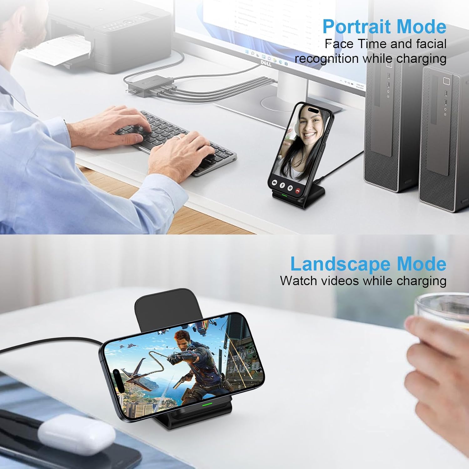 Dual Viewing Angles Wireless Charger Pixel: Dual coil pixel 8 wireless pad charges your phone vertically or horizontally charging. Say goodbye to tangled cords and enjoy wirelessly charge by simply laying your phone on the charging stand, no more plug in/out troubles.