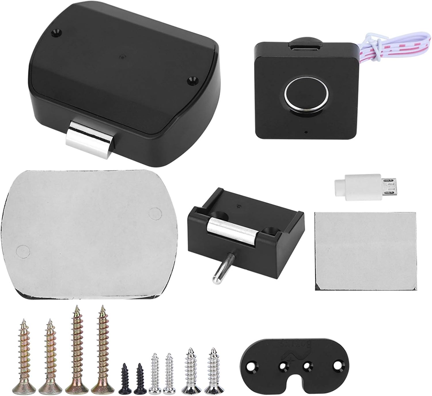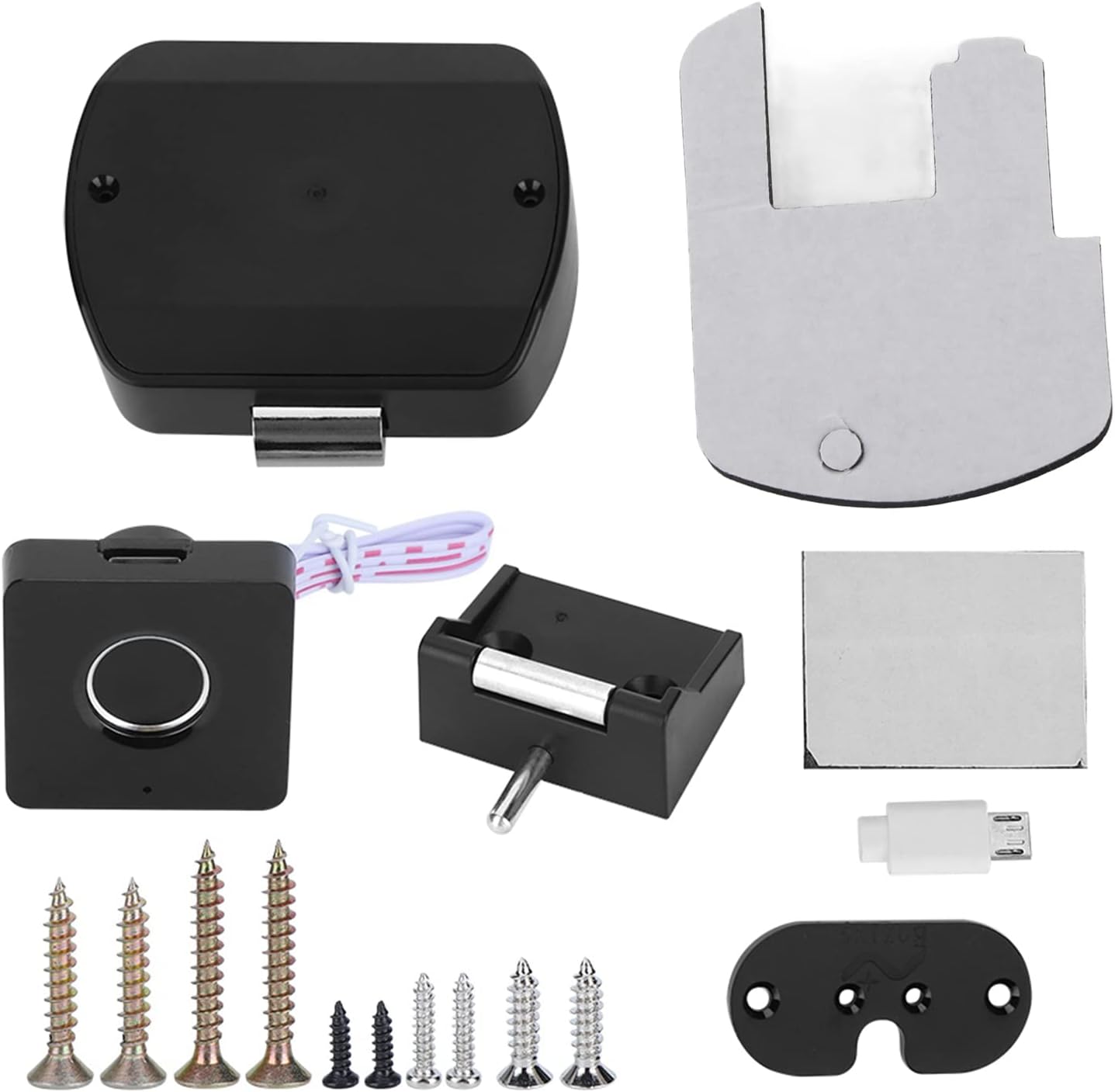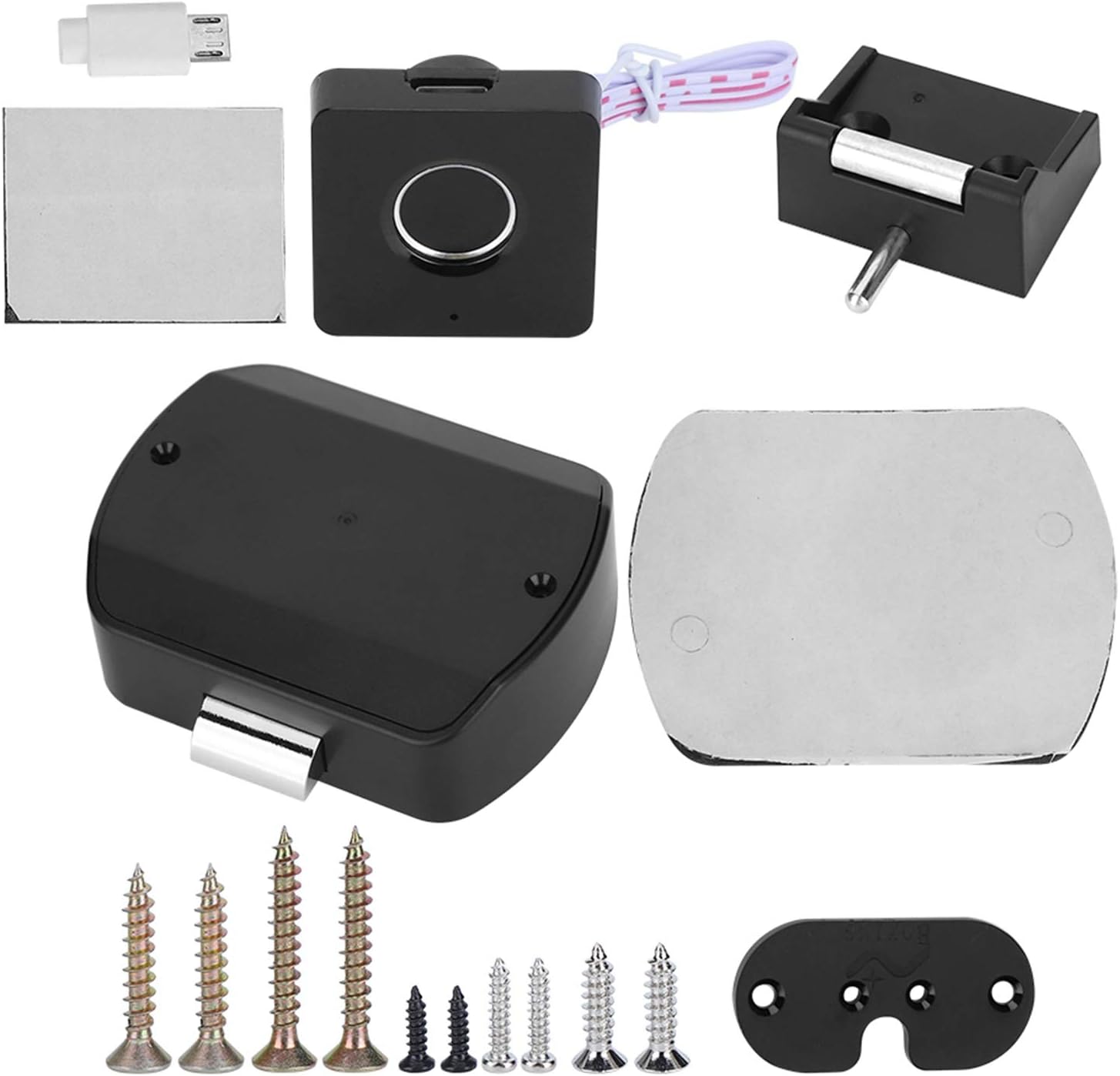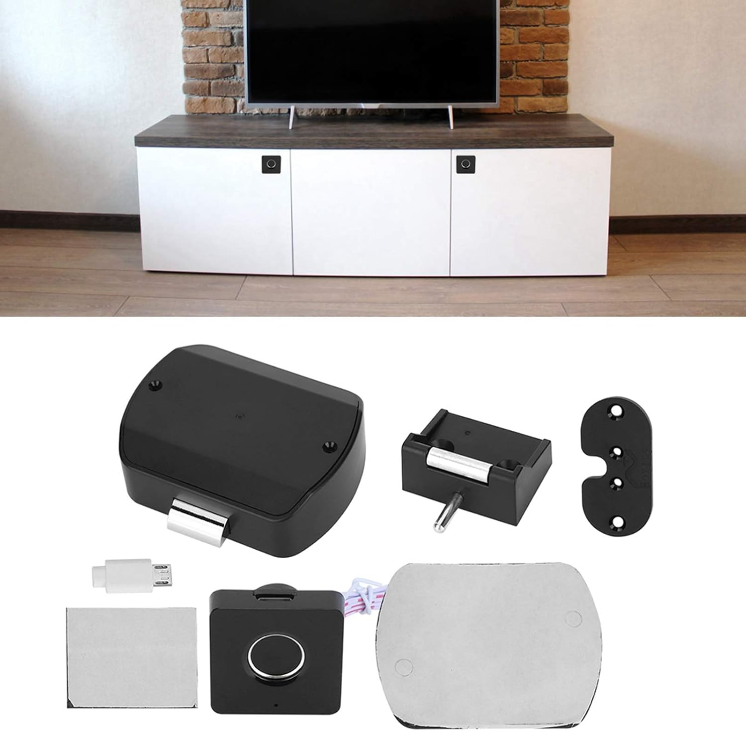 Home Improvement Door Window Hardware Locks, Home Office Wardrobe Furniture, Keyless Fingerprint Lock with Multiple User Management, Black Smart Electric Cabinet Lock for Home