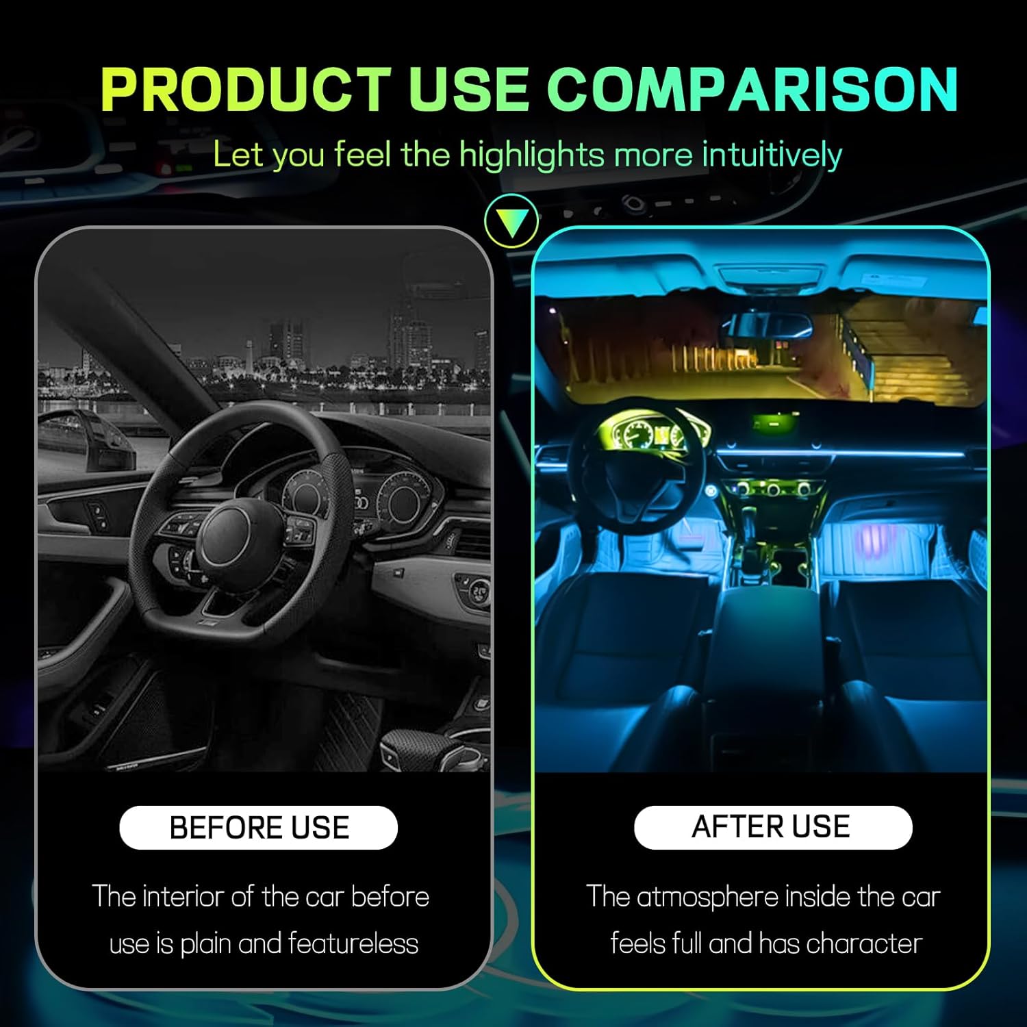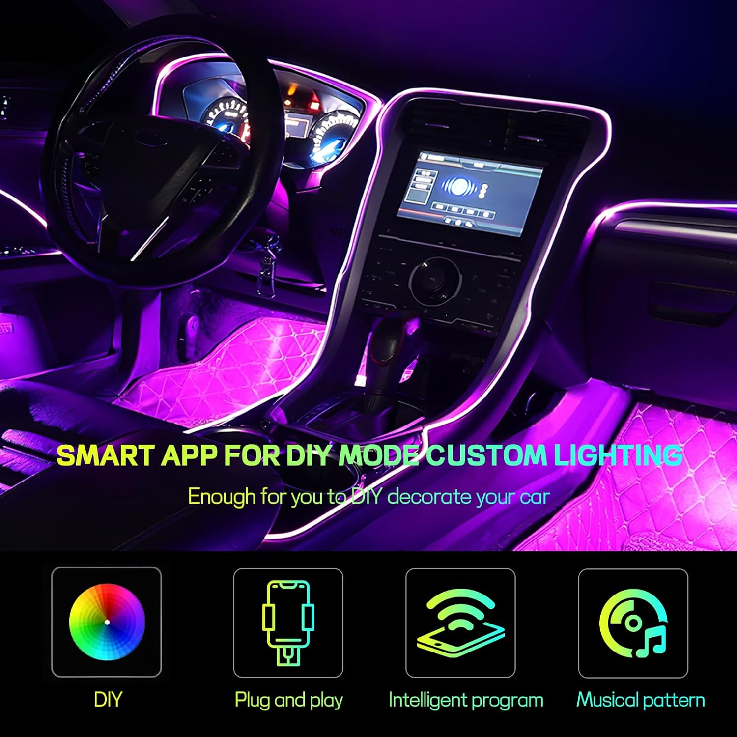 【Multiple Colors & Modes Adjustable】: It has 16 million colors to choose from, and you can also customize the lighting effects through the diy mode of the smart app. No matter what style you favor, it can meet your preferences, and you are free to be creative to enhance your driving experience and make your car stand out.