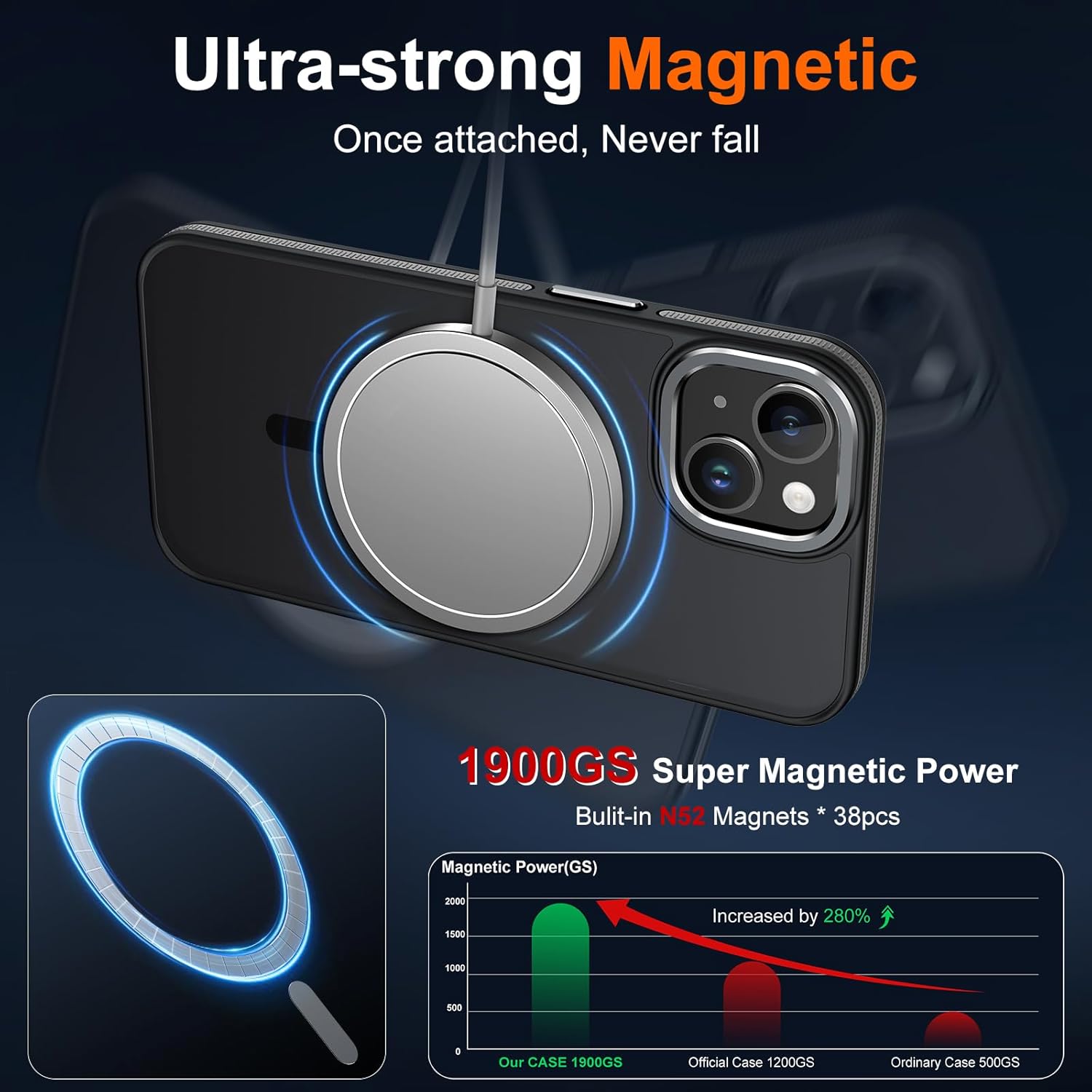 [Stronger Wireless Charging Compatible] – Our iphone 15 cases compatible with magsafe accessories and chagers, use the latest magnetic coil tech to ensure a faster and safer wireless charging without removing the case, support use with wireless power bank, wireless charging stand, car mount charging, provide 35% charging efficiency than original charging. With magnetic back for iphone 15 case reinforces the magnetic force, making the phone more stable when charging or using it on the car mount.